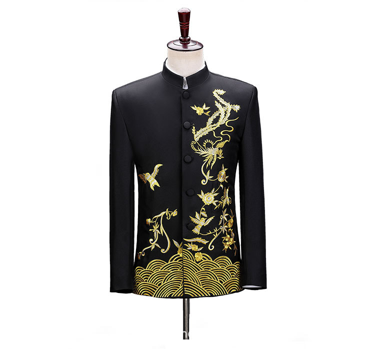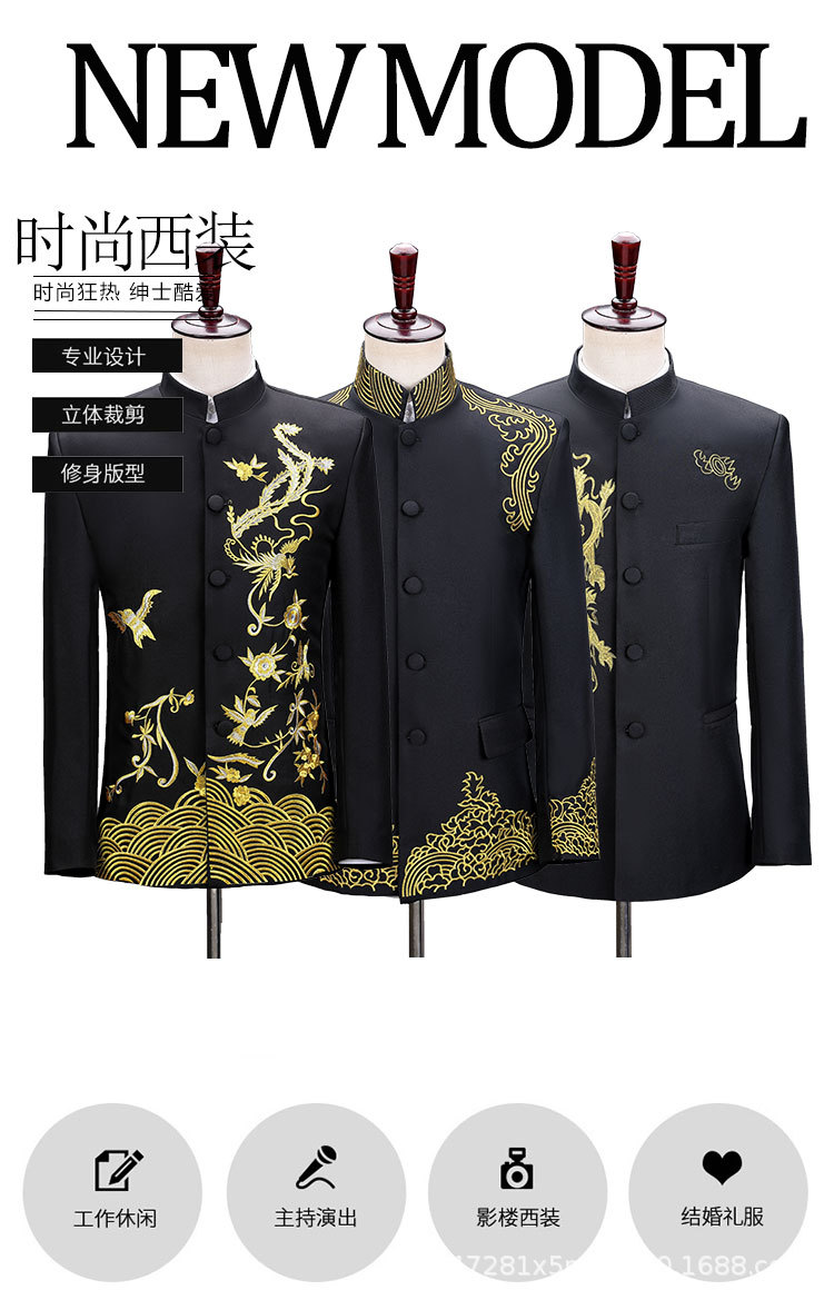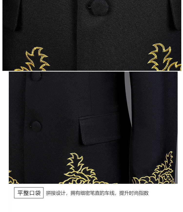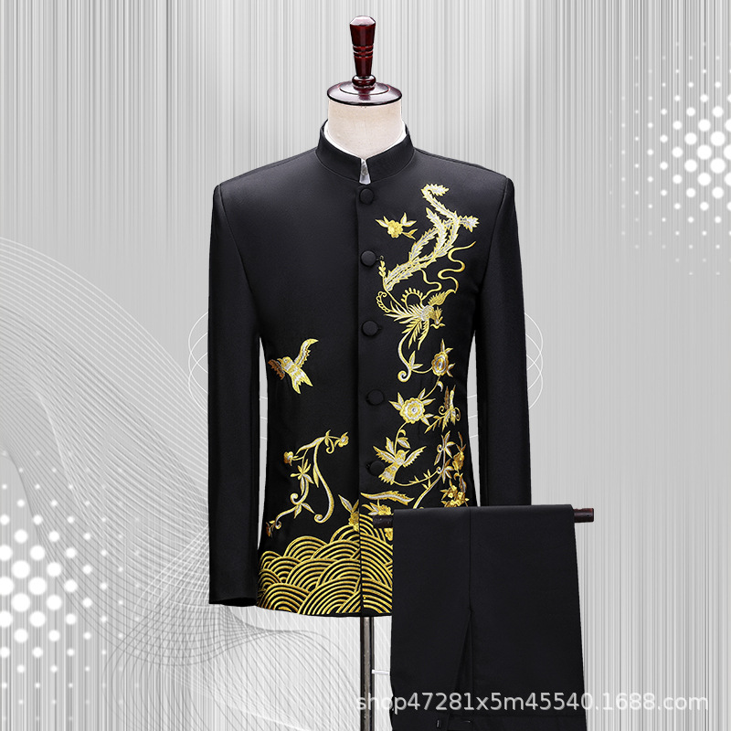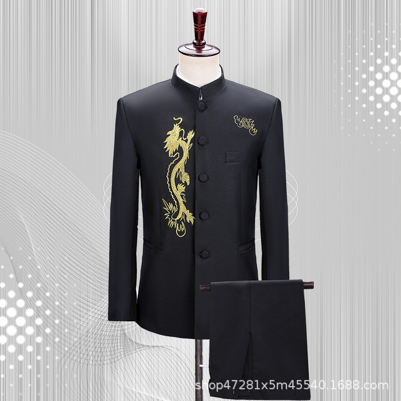 Черный воротник-стойка костюм китайской туники мужской певец ведущий Молодежный костюм для выступления в хоре костюм Китайской Республики Национальный стиль