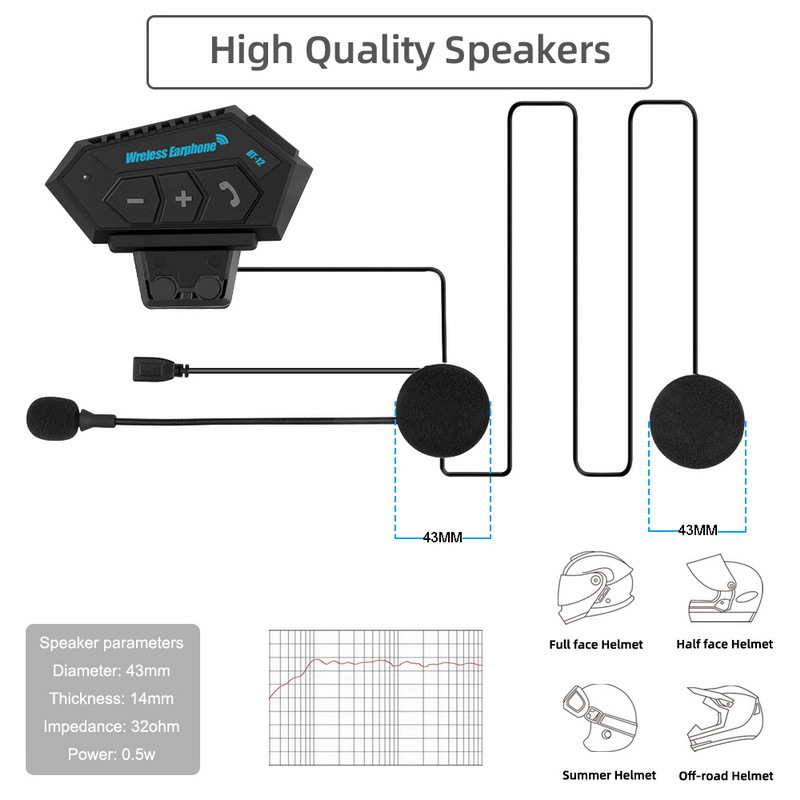 Беспроводная гарнитура для шлема электромобиль езда телефонный звонок прослушивание музыки мотоциклетный шлем Bluetooth-гарнитура BT12
