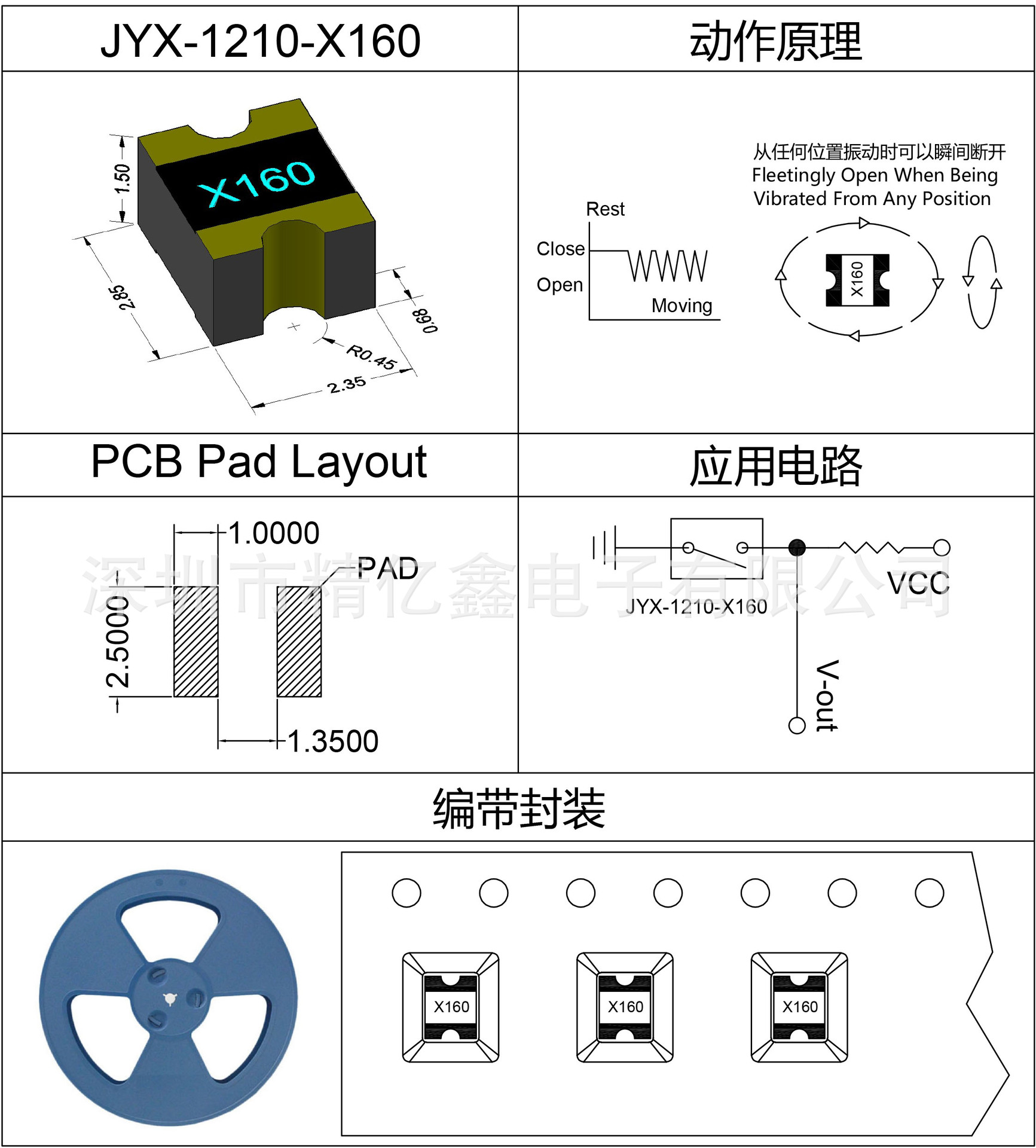Конденсаторный переключатель с шариковым датчиком вибрации от производителя, высокочувствительный вибрационный переключатель для специальных ручек.