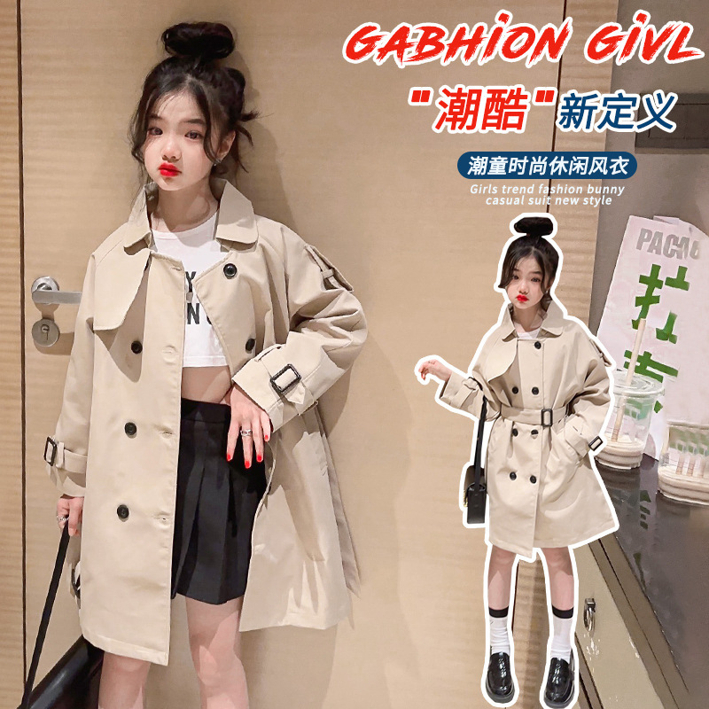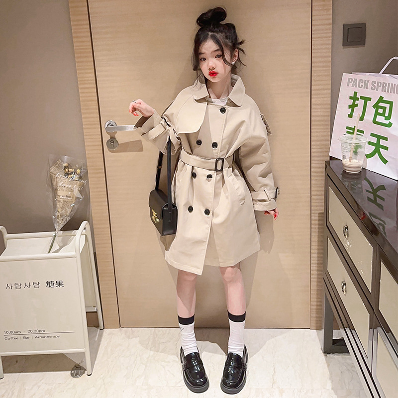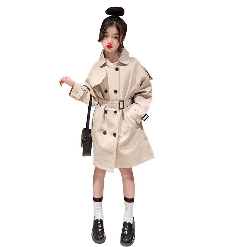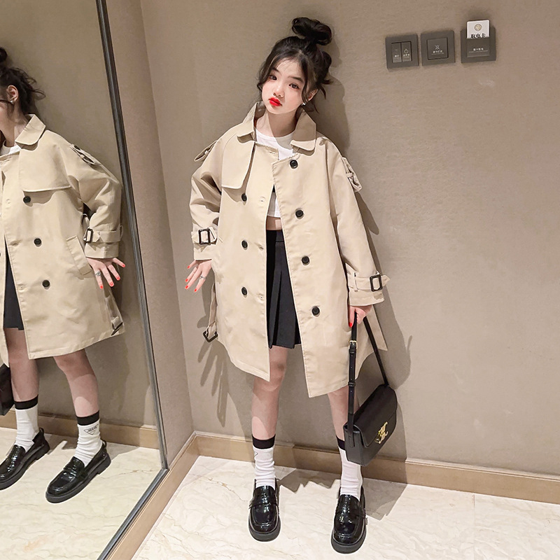 Трансграничные оптовые ветровки для девочек, весенне-осенние качественные детские модные куртки для детей старшего возраста, британский стиль, средней длины