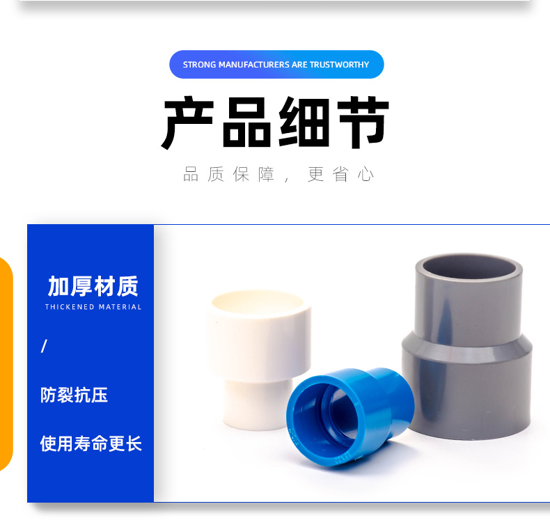 Большой редуктор из ПВХ с прямым уменьшением диаметра за счет фитинга 63 водопроводная труба 75 соединение 50 63 75 90