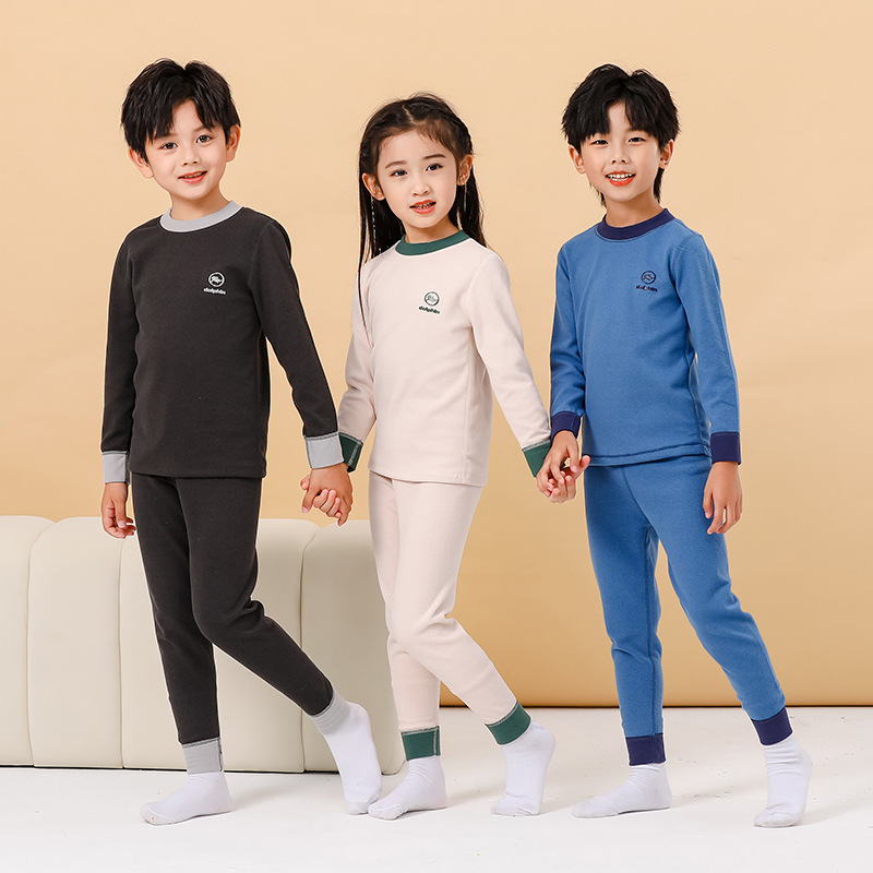 Осенне-зимний детский термобелье, двухсторонний бархатный костюм среднего размера, Детская осенняя одежда и брючный костюм, Пижама для мальчиков и девочек