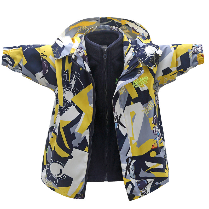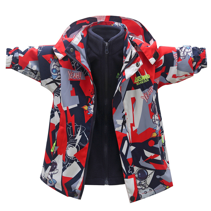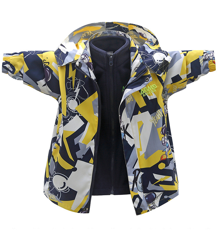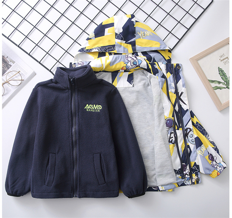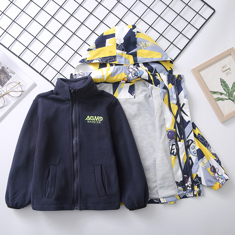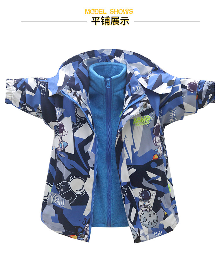 Пальто для мальчиков весна-осень 2023 Новая осенняя одежда Большой детский топ на флисовой подкладке Съемная детская пикантная одежда «Три в одном»