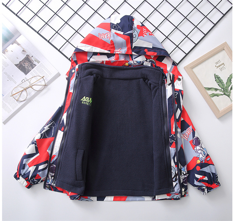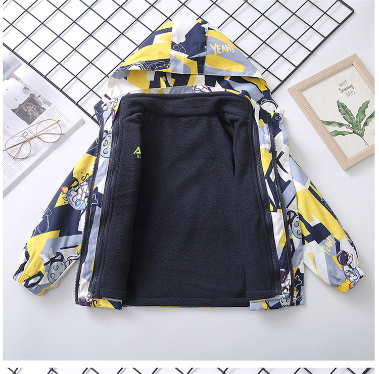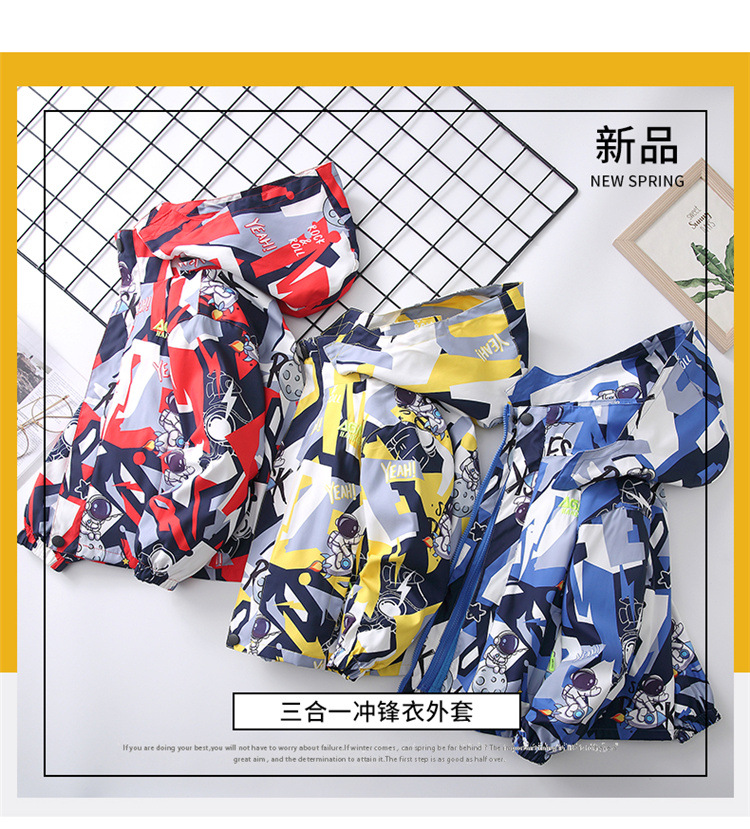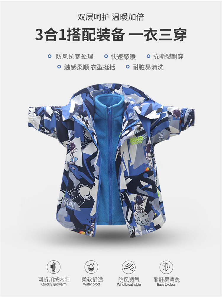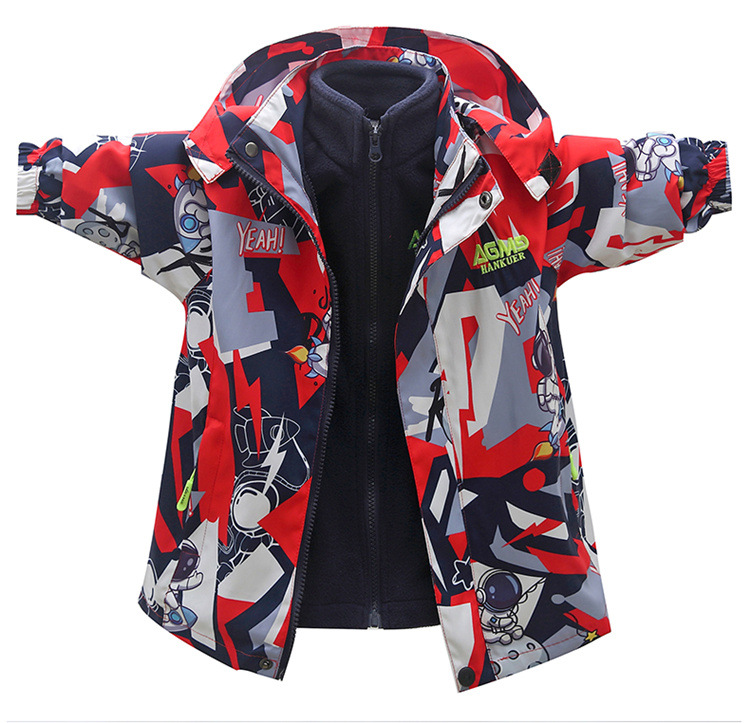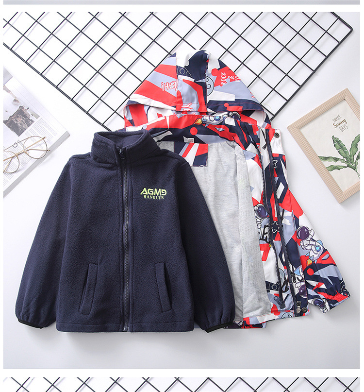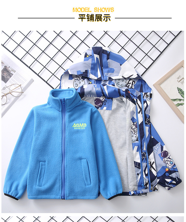 Пальто для мальчиков весна-осень 2023 Новая осенняя одежда Большой детский топ на флисовой подкладке Съемная детская пикантная одежда «Три в одном»