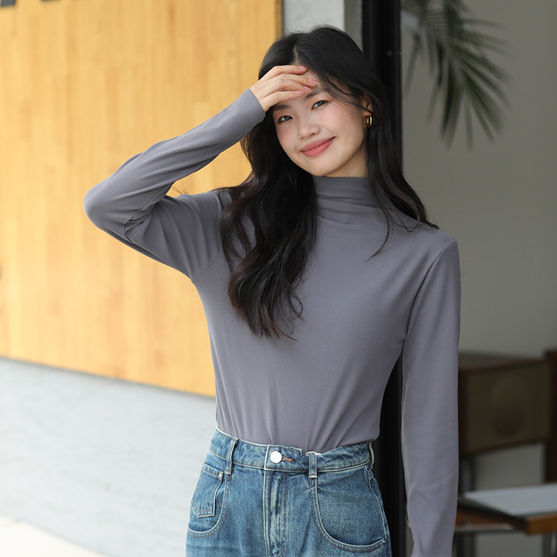 Осенне-зимняя Базовая рубашка из расширенного флиса, Женский Топ с круглым вырезом и длинными рукавами, приталенный Повседневный вязаный свитер с воротником-стойкой