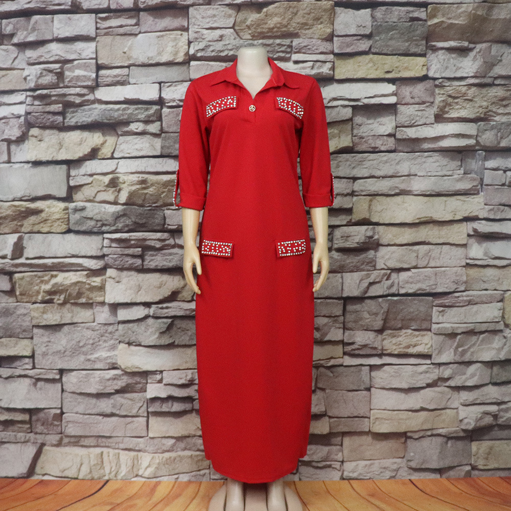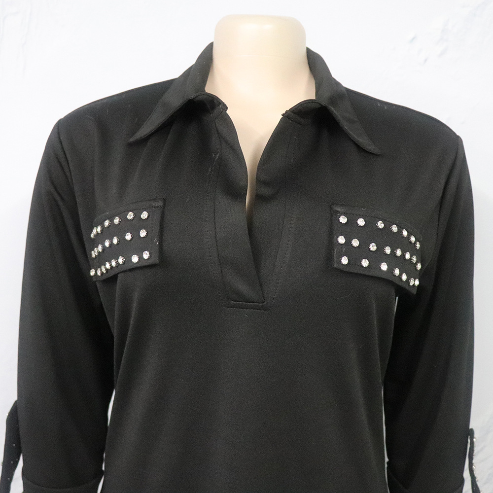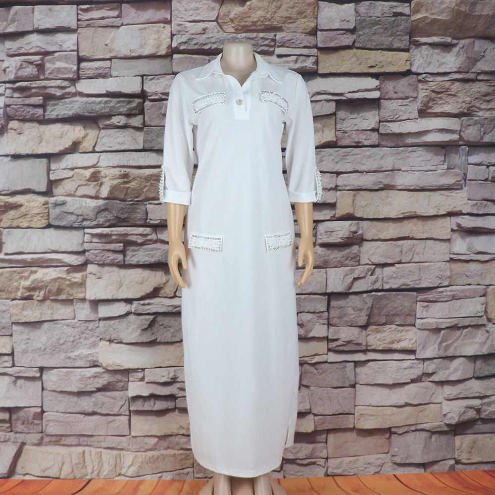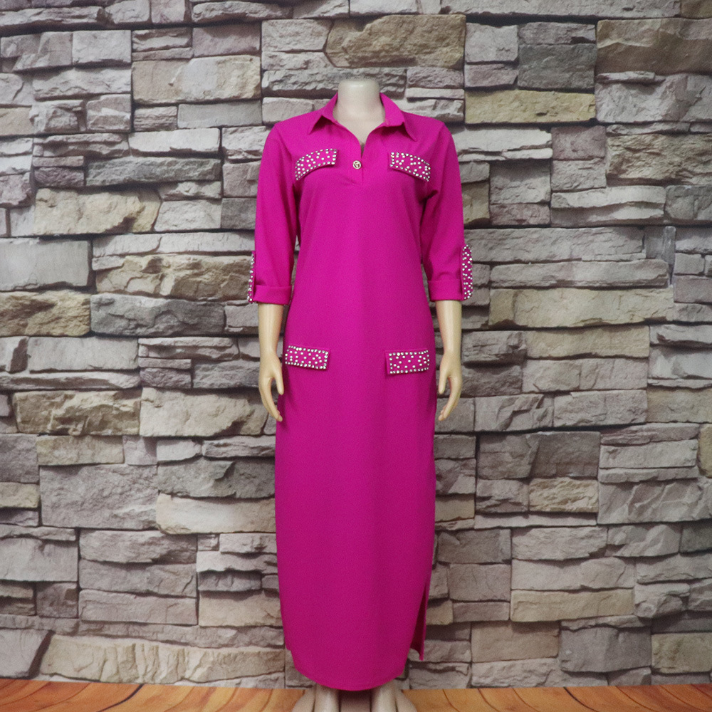 Внешняя торговля Европа, Америка и Африка женское платье рубашка воротник с брошью горячей бурения эластичной ткани вскользь платье