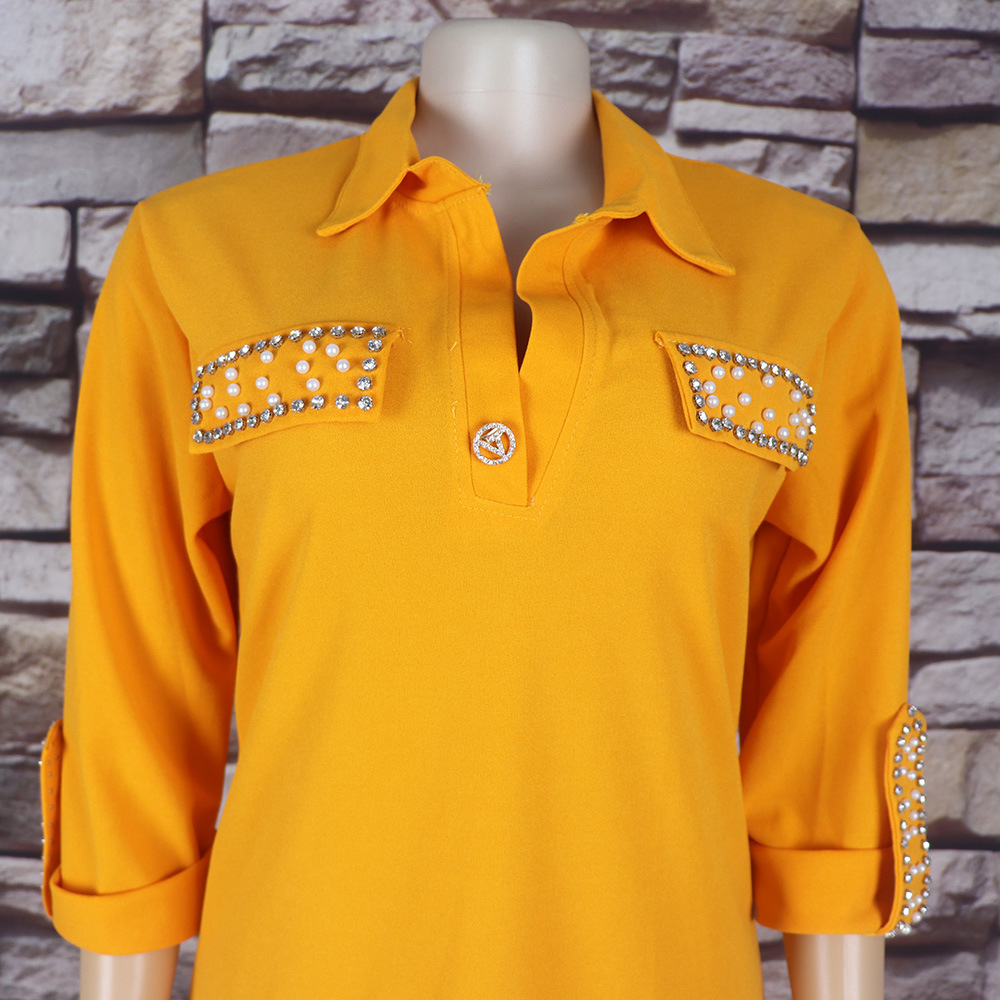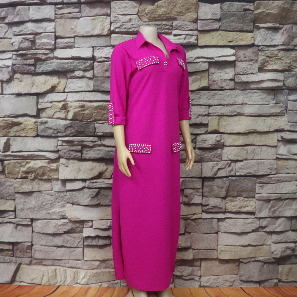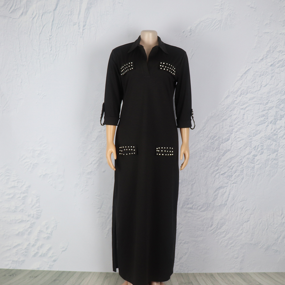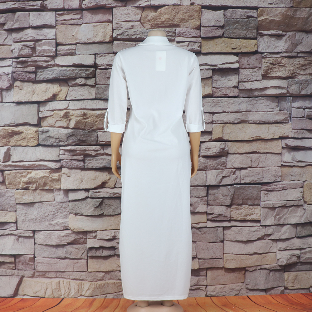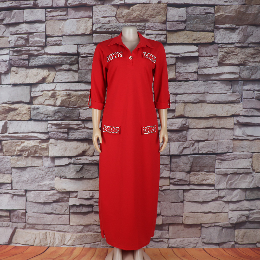 Внешняя торговля Европа, Америка и Африка женское платье рубашка воротник с брошью горячей бурения эластичной ткани вскользь платье