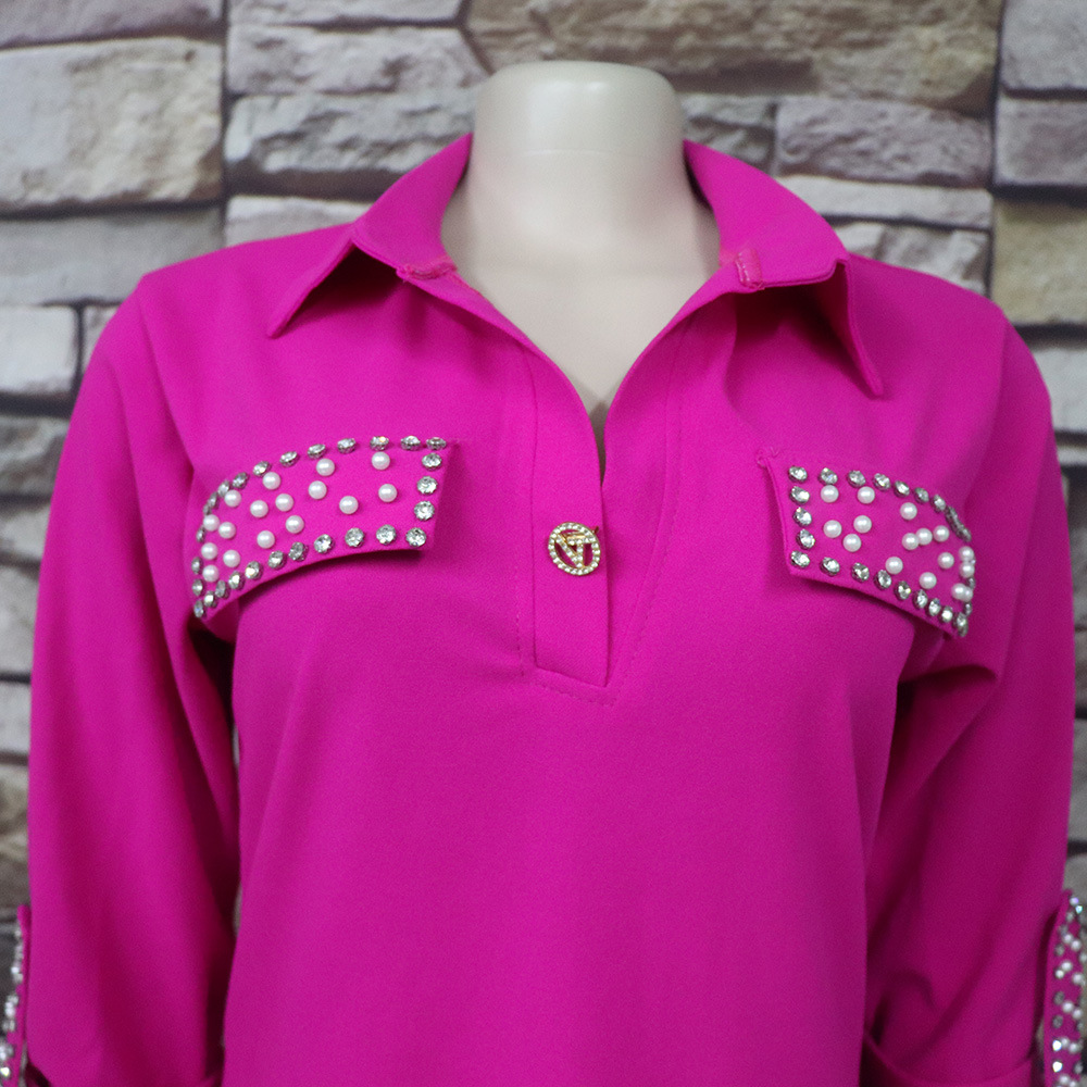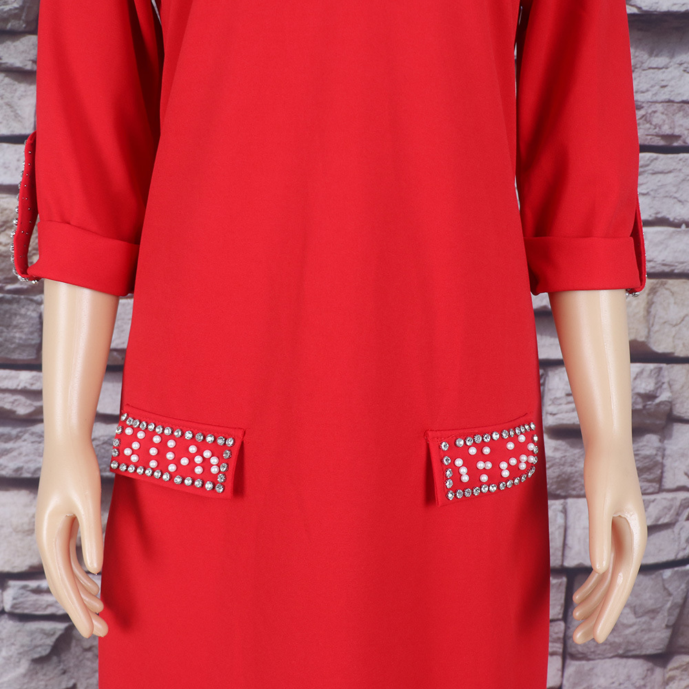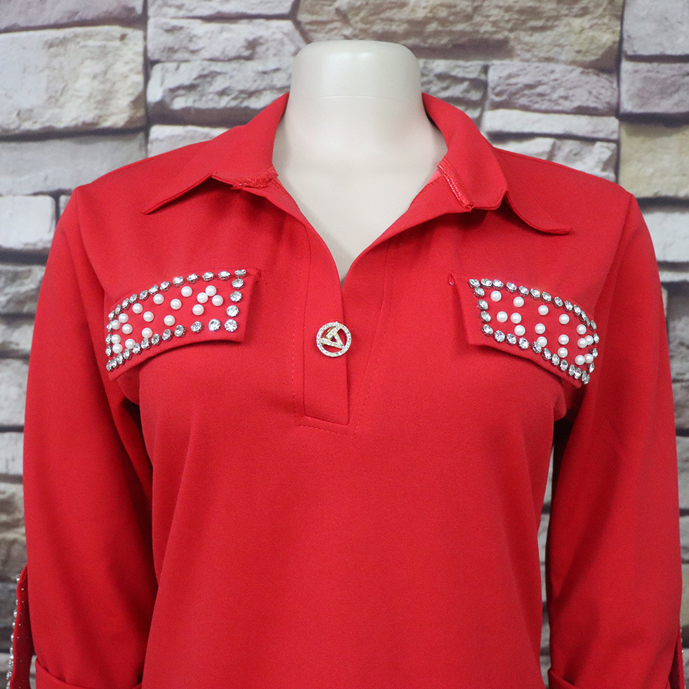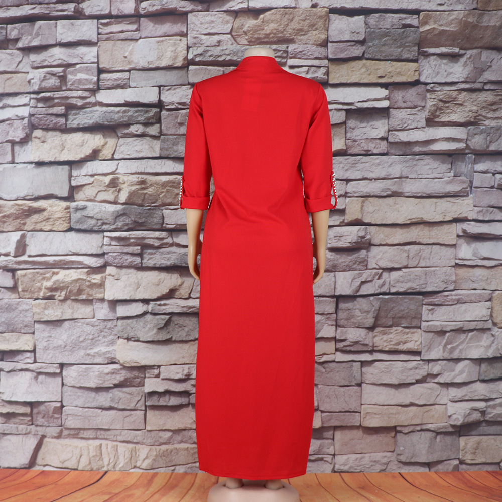 Внешняя торговля Европа, Америка и Африка женское платье рубашка воротник с брошью горячей бурения эластичной ткани вскользь платье