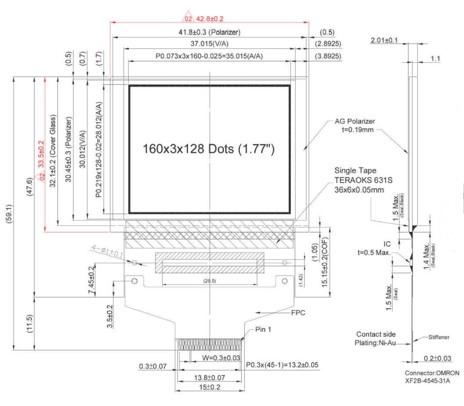 1,77-дюймовый цветной Удлинительный кабель с ЖК-экраном QG-6028GDEAF02-удлинитель 45-контактный разъем