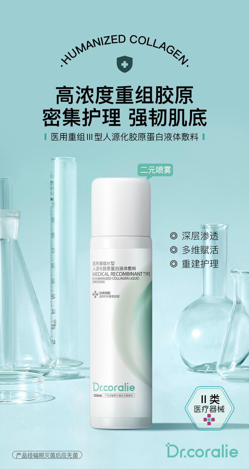 Медицинский рекомбинантный типа Ⅲ гуманизированный коллаген Жидкая повязка (бинарный спрей) 100 мл