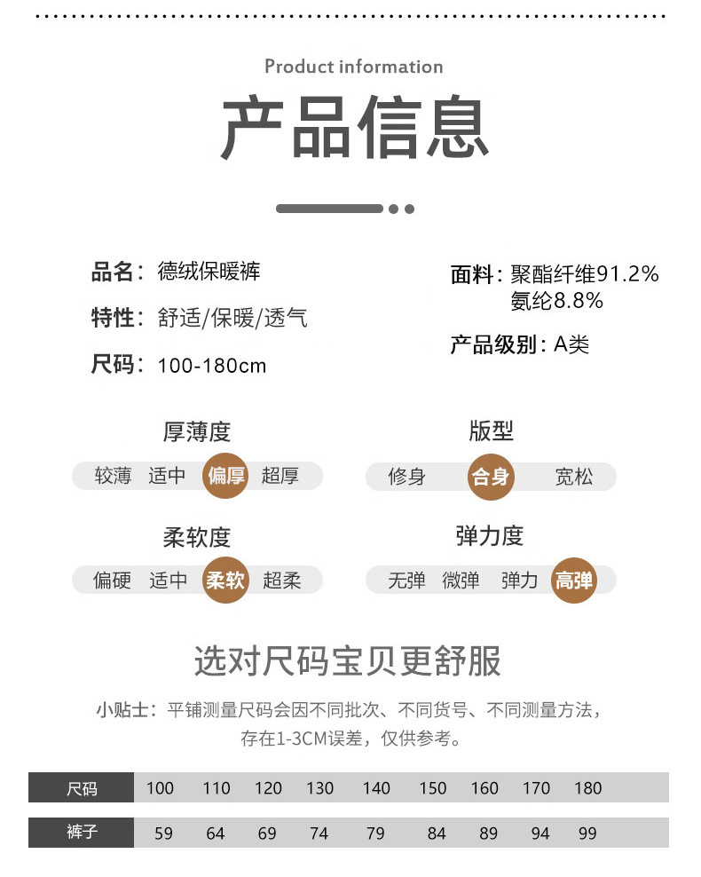 100cm; 110cm; 120cm; 130cm; 140cm; 150cm; 160cm; 170cm; 180cm