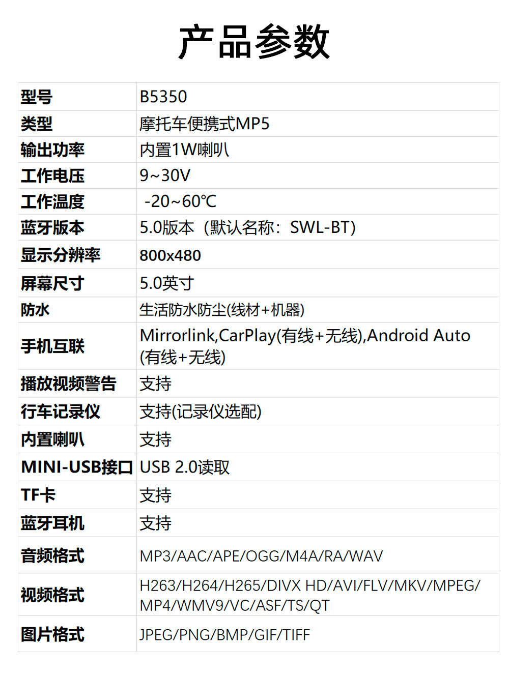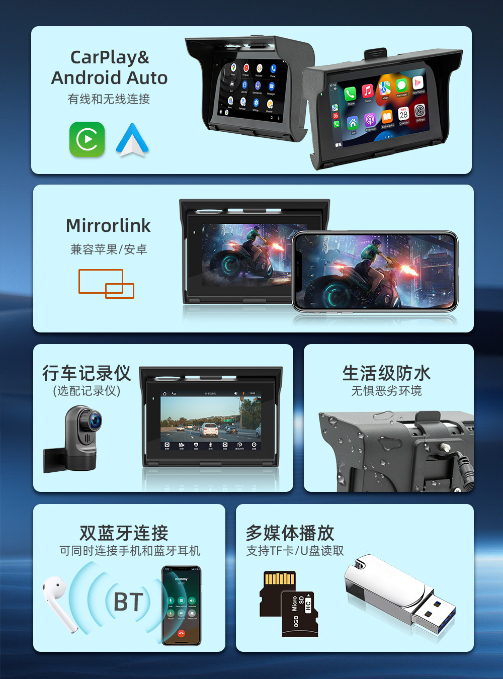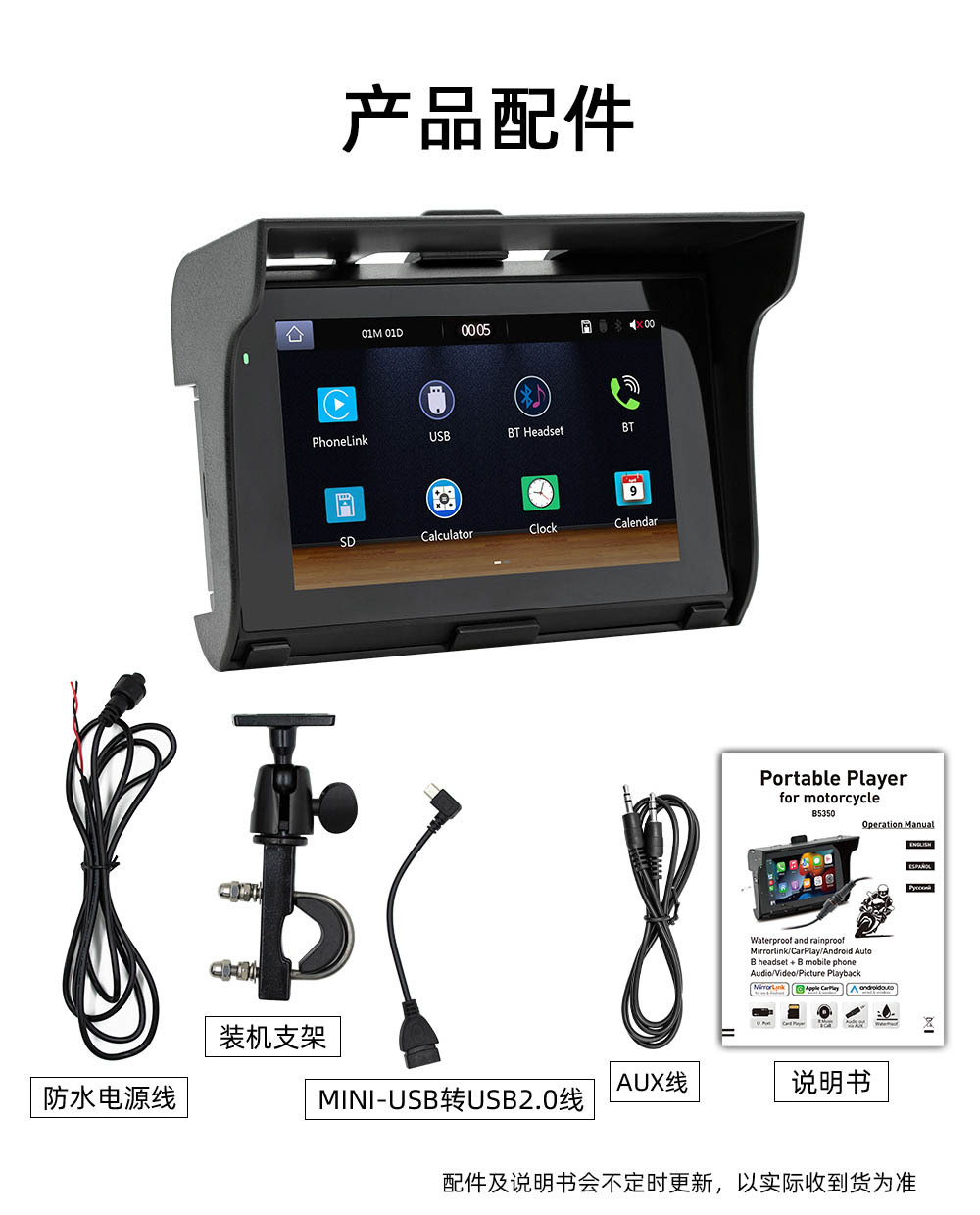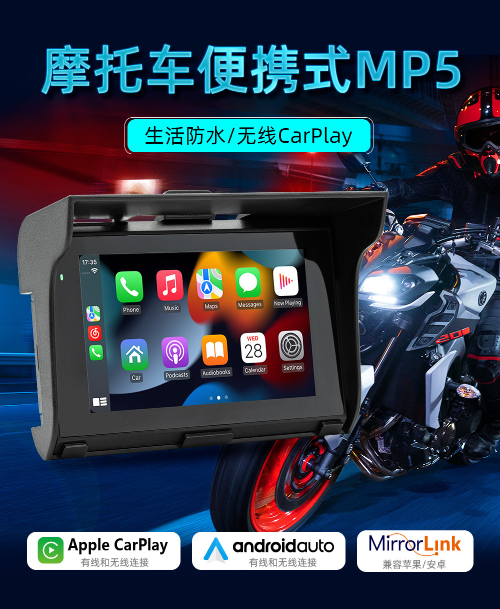 5-дюймовый мотоцикл портативный автомобильный MP5-плеер Водонепроницаемый двойной Bluetooth регистратор вождения беспроводной CarPlay