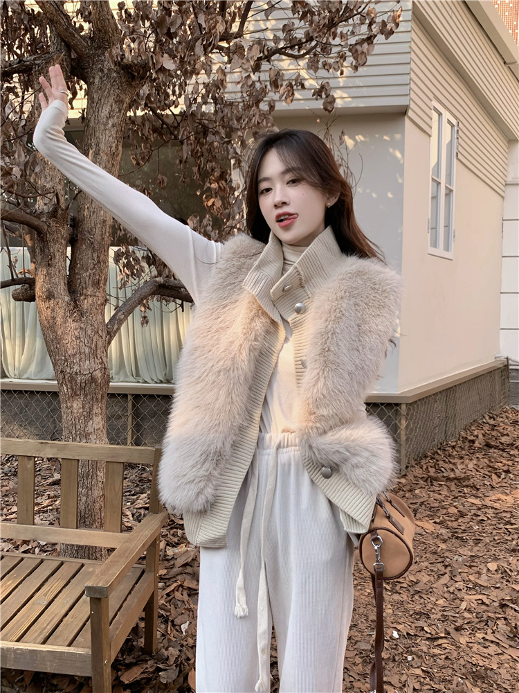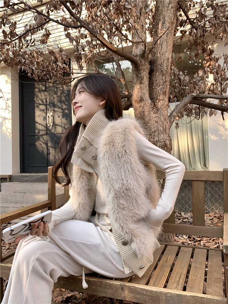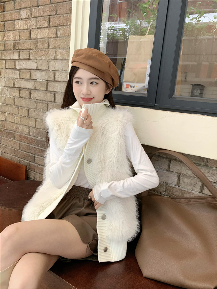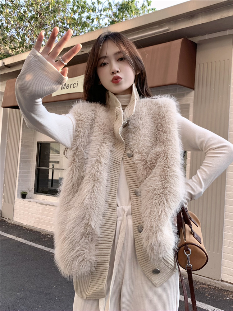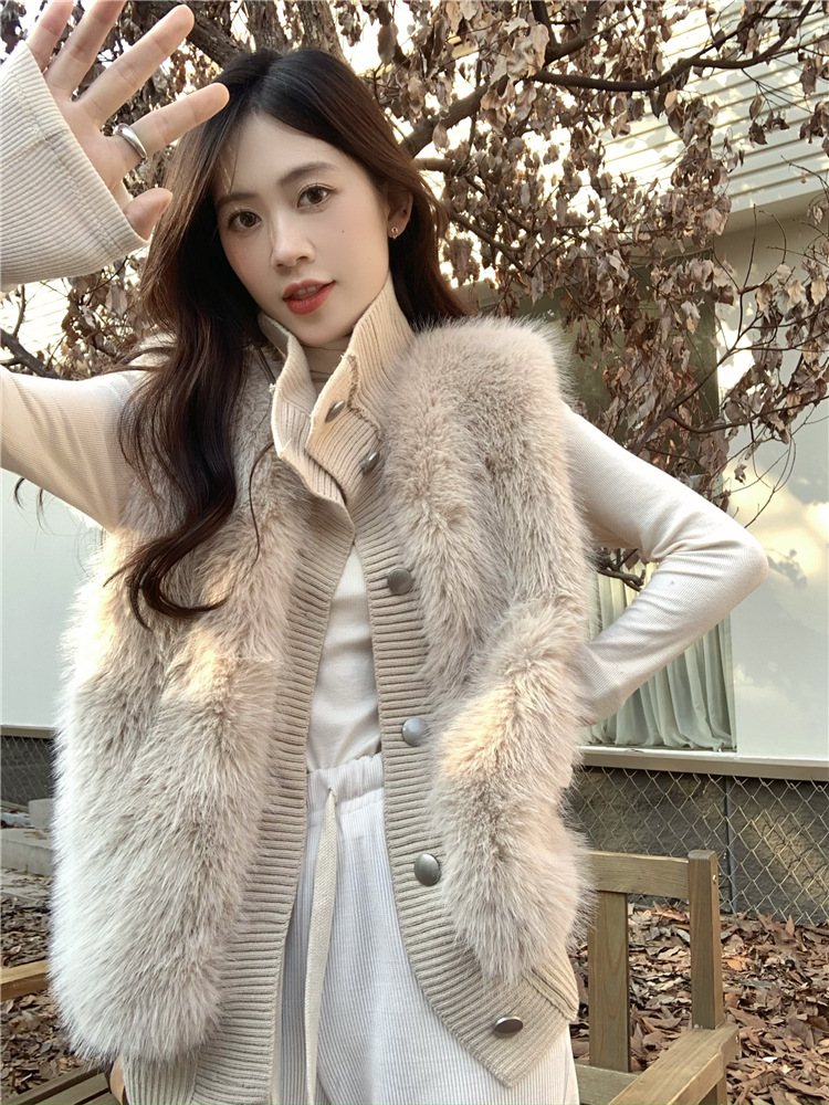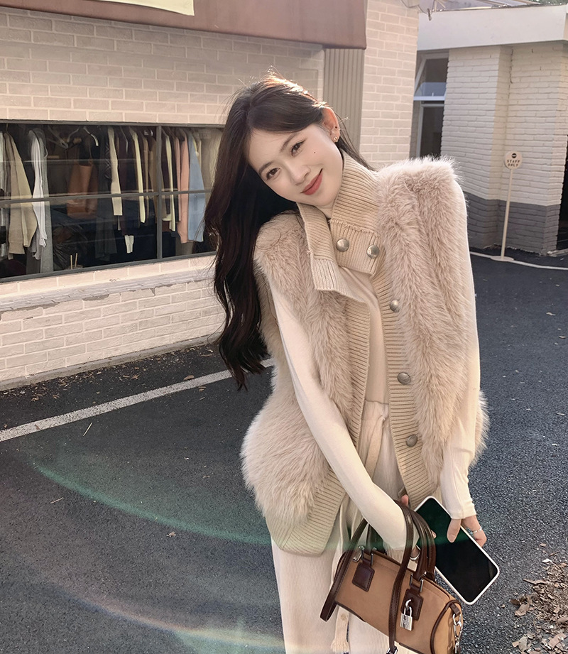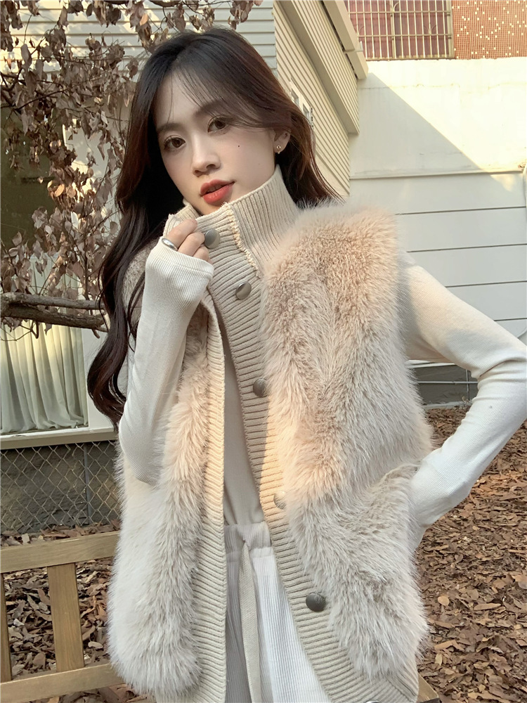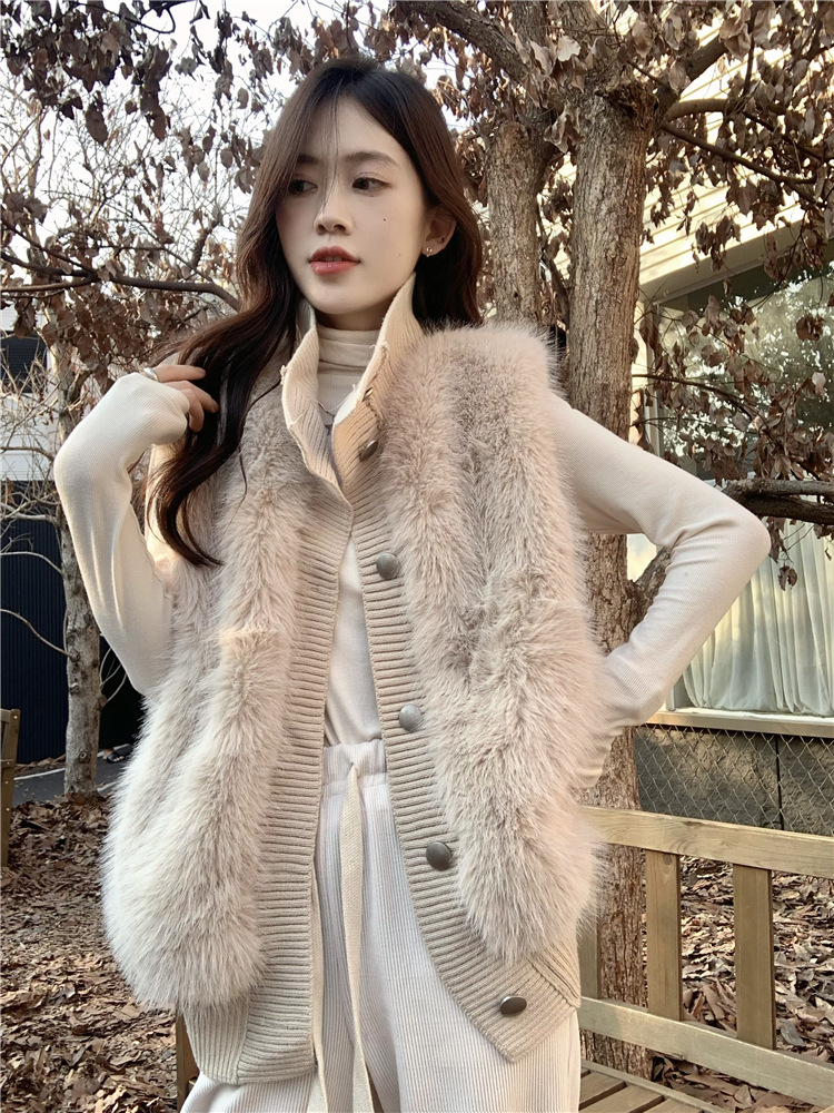 Корейский стиль, норковый бархатный свитер без рукавов с воротником-стойкой, женская куртка 2025, осенне-зимний новый свободный элегантный элегантный вязаный кардиган