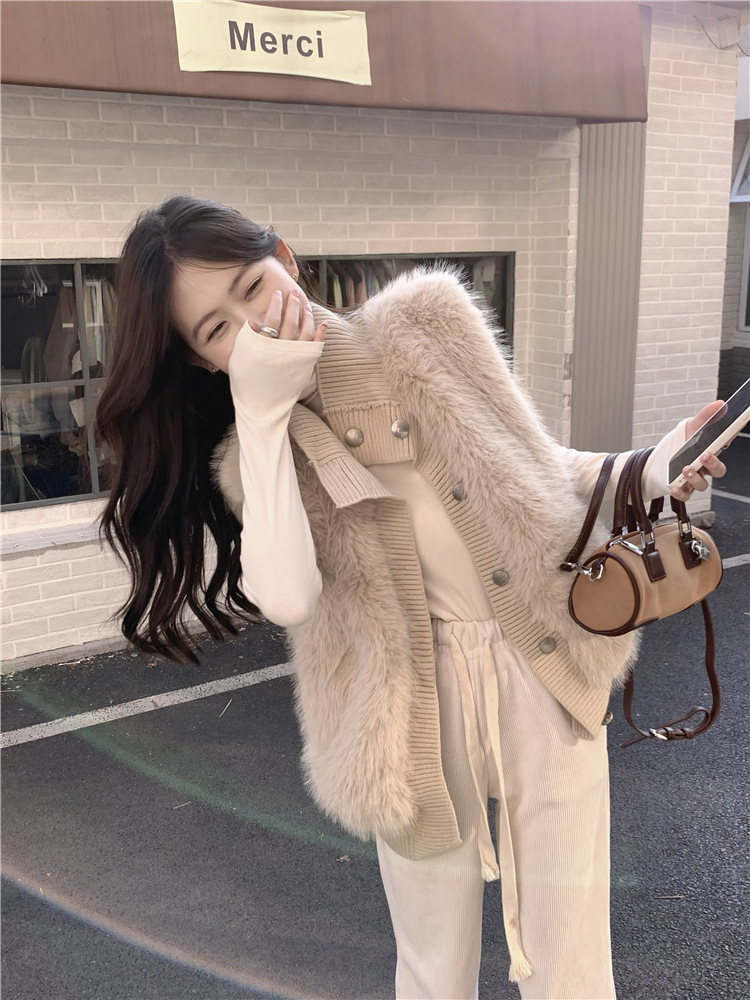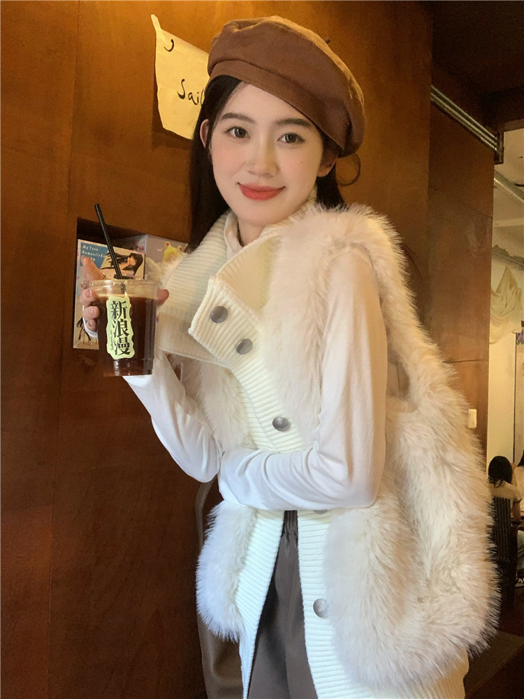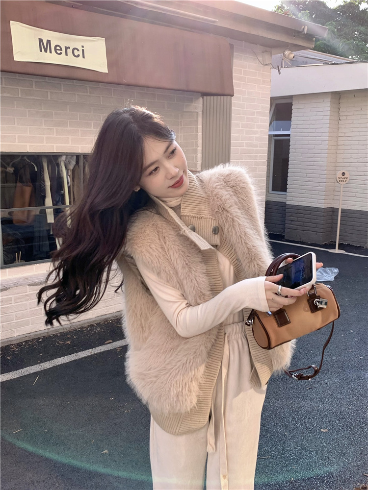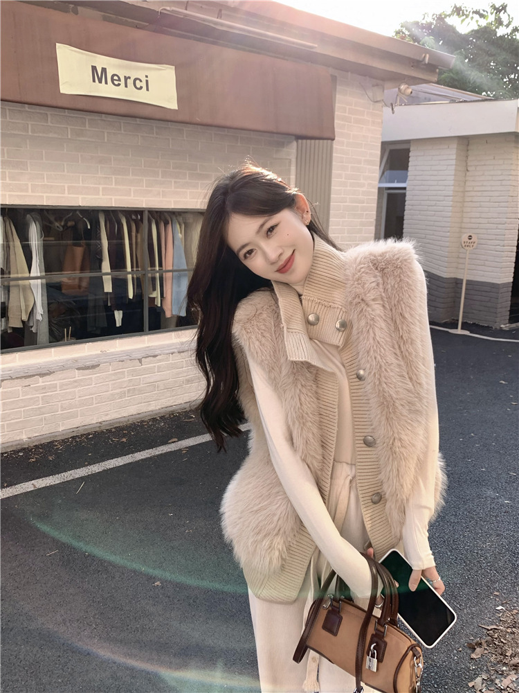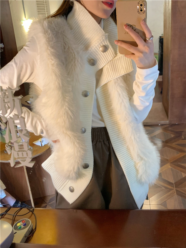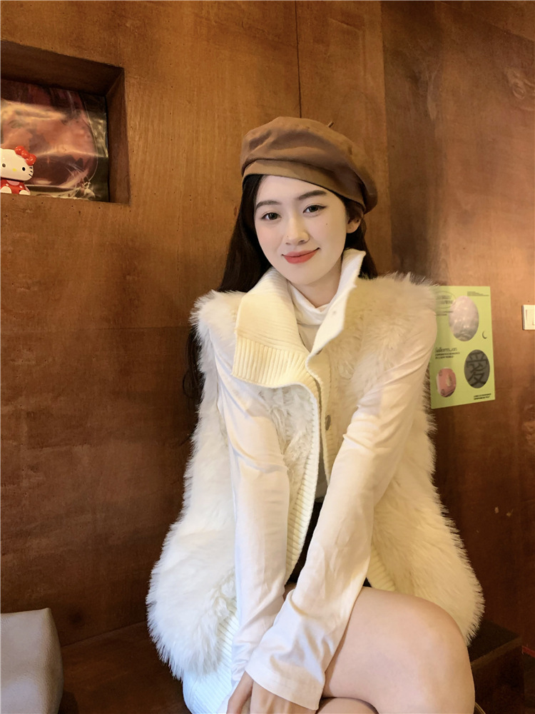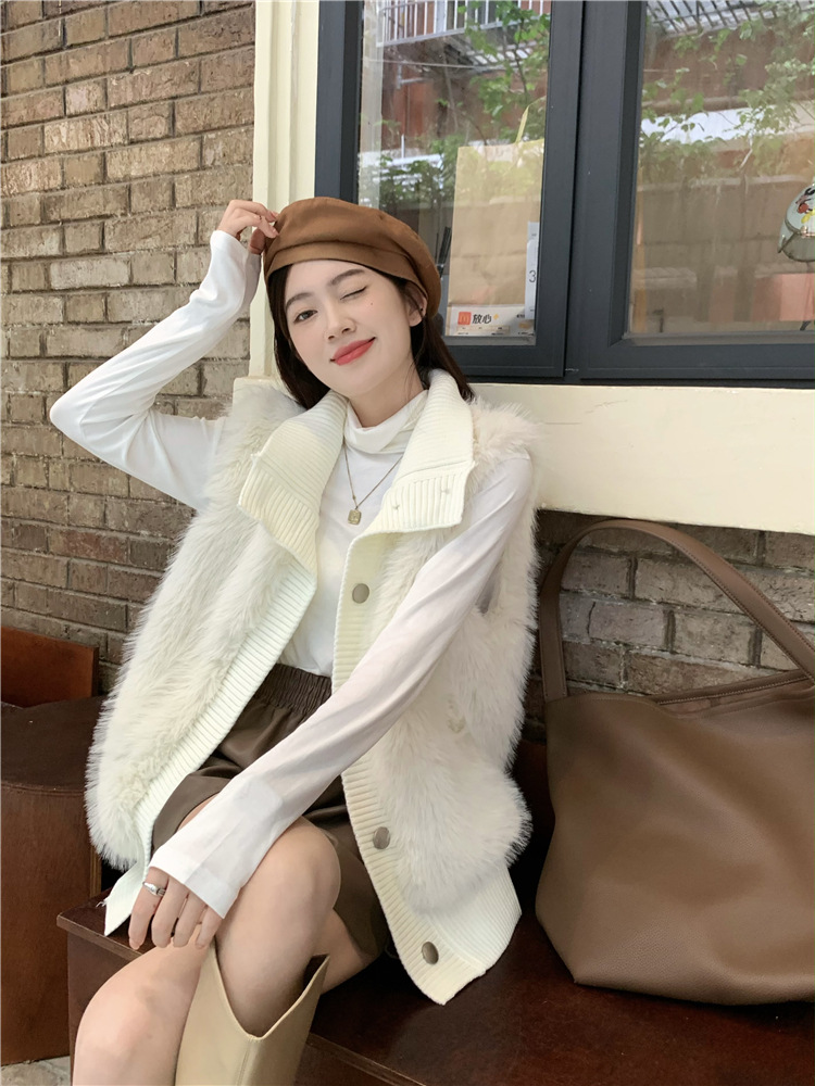Корейский стиль, норковый бархатный свитер без рукавов с воротником-стойкой, женская куртка 2025, осенне-зимний новый свободный элегантный элегантный вязаный кардиган