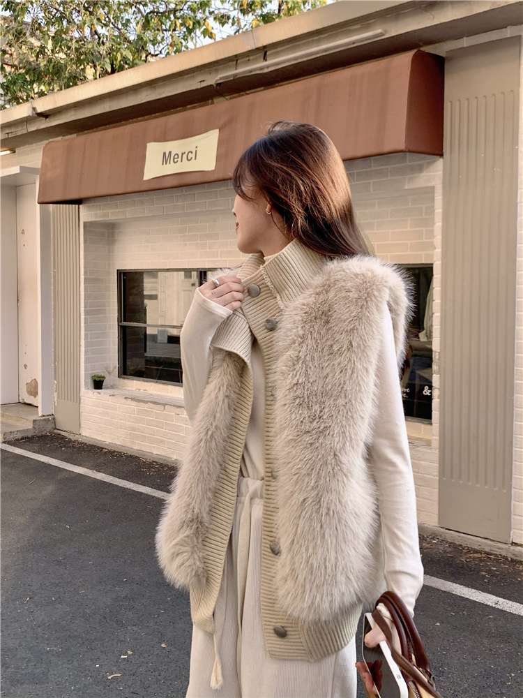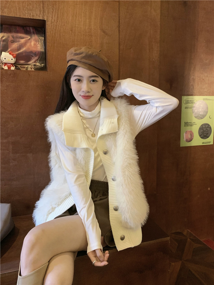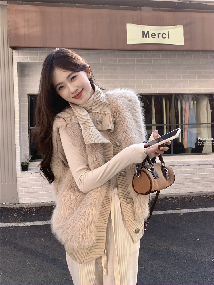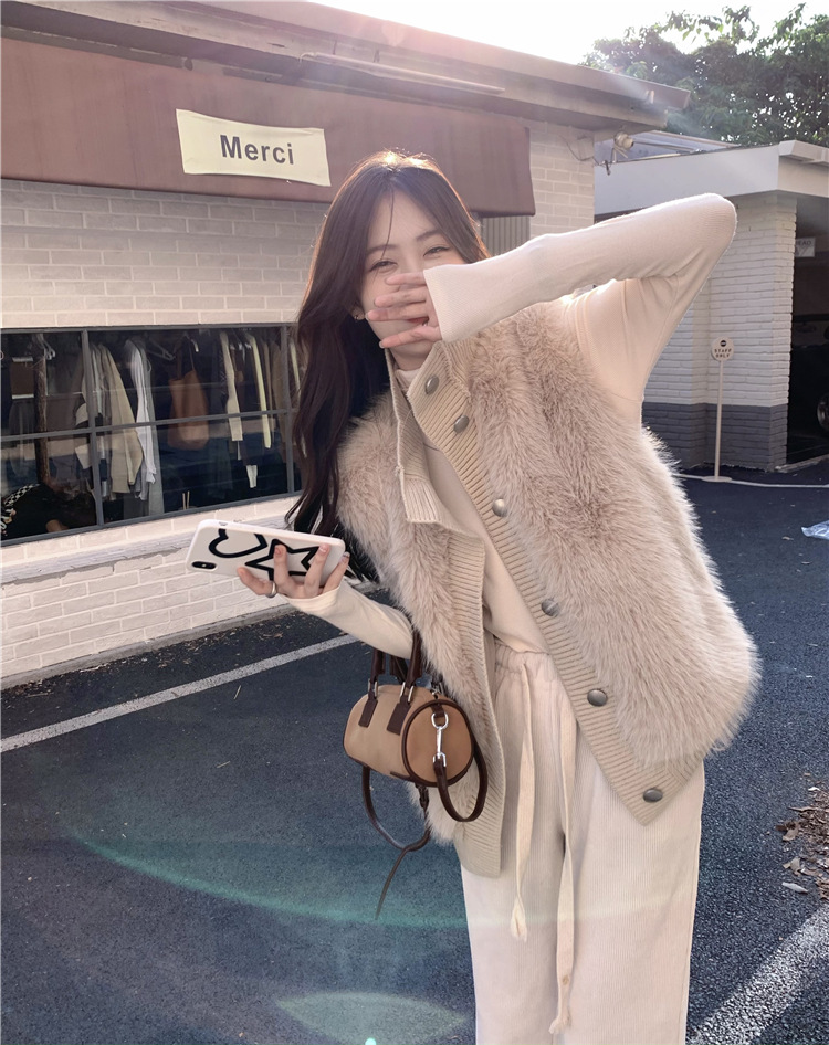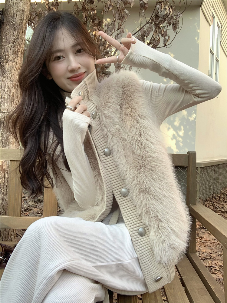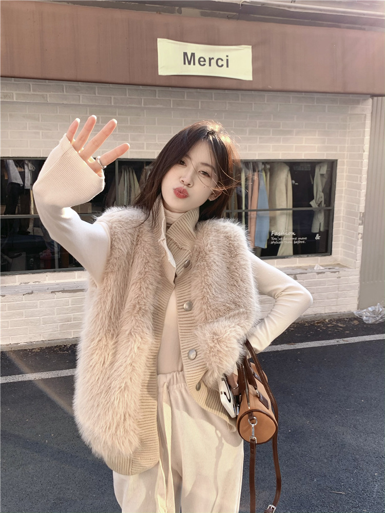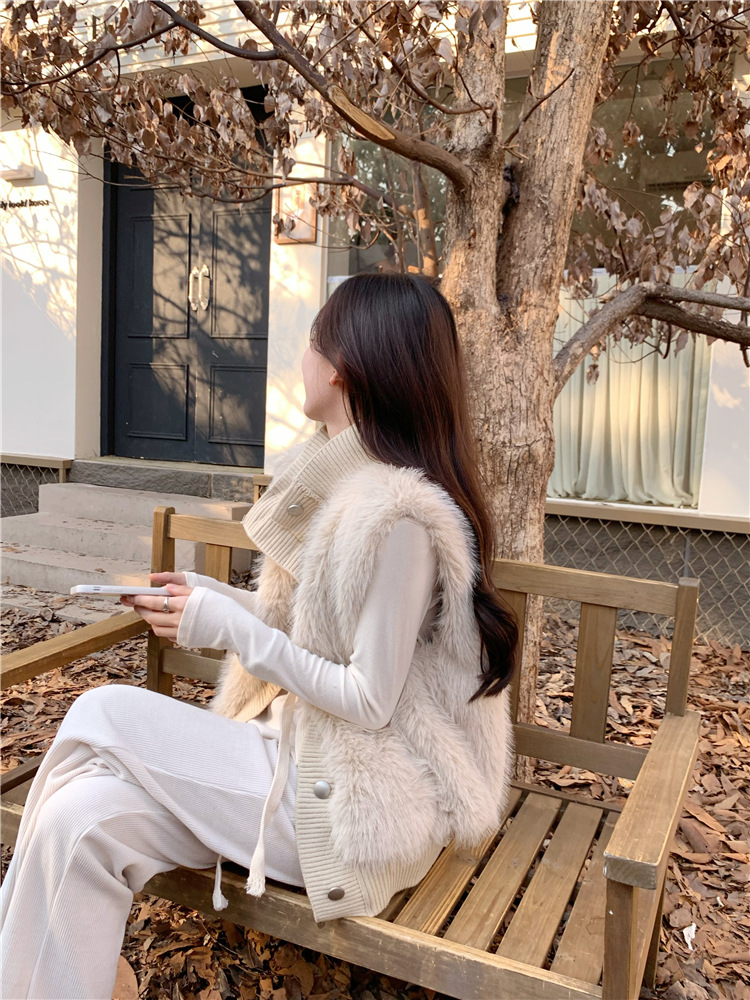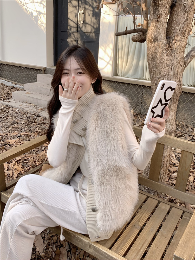 Корейский стиль, норковый бархатный свитер без рукавов с воротником-стойкой, женская куртка 2025, осенне-зимний новый свободный элегантный элегантный вязаный кардиган