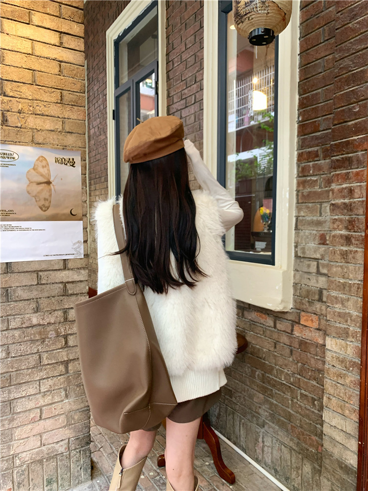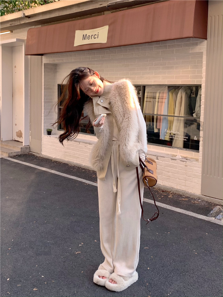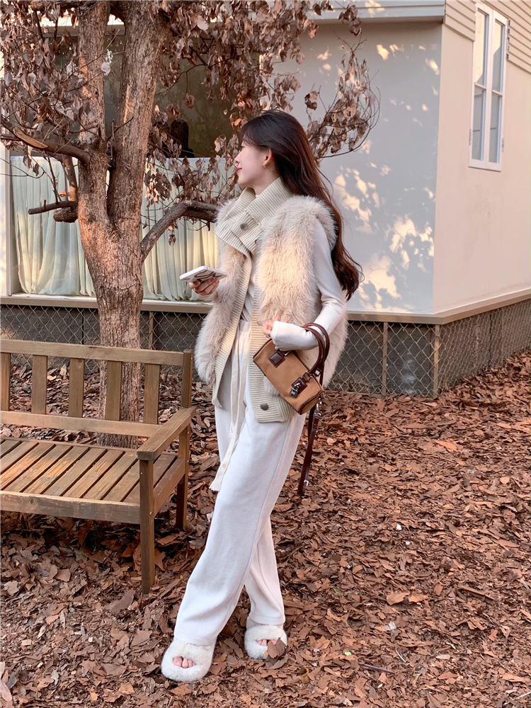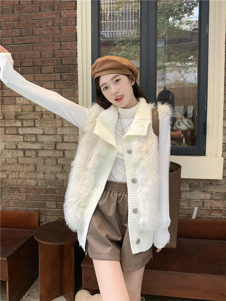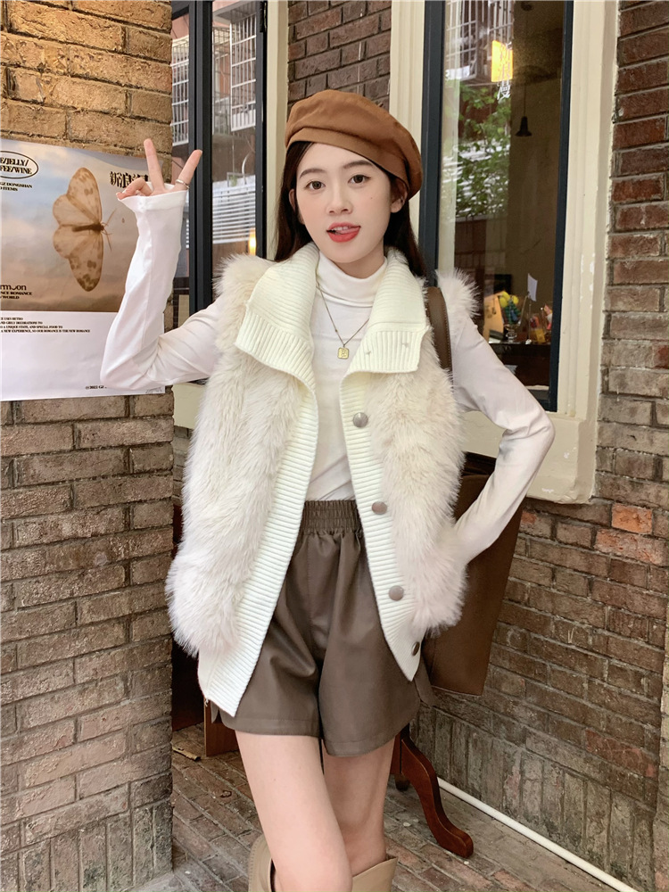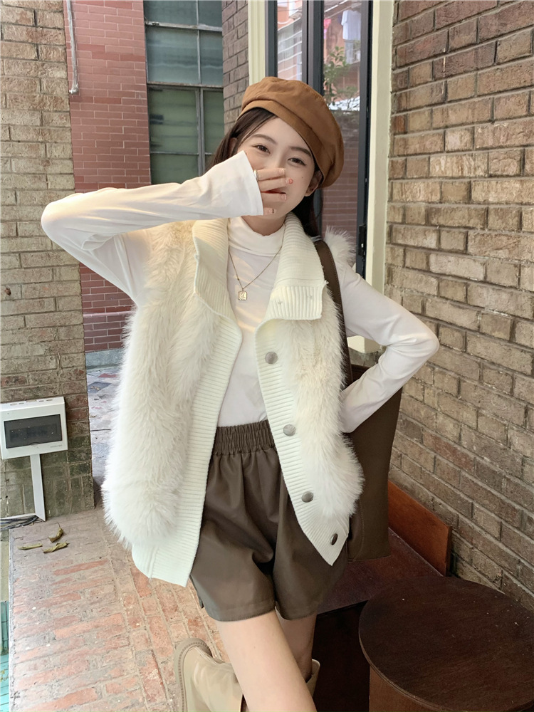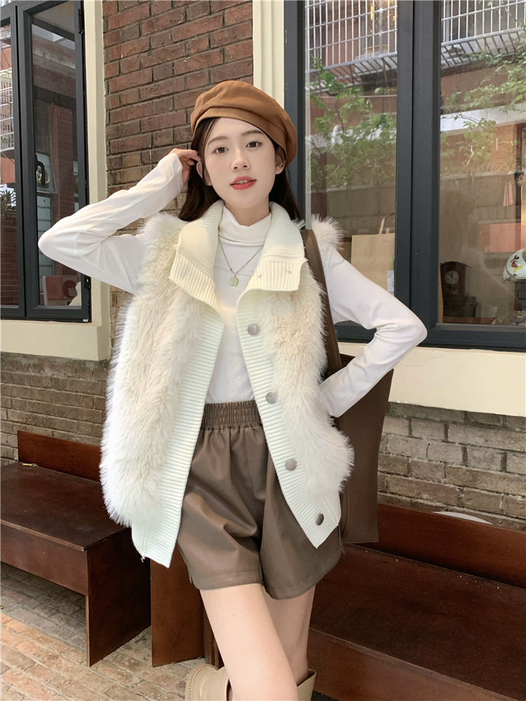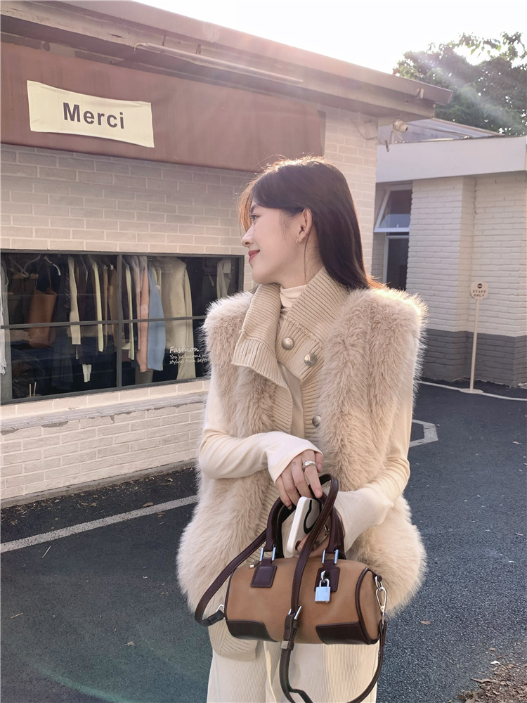 Корейский стиль, норковый бархатный свитер без рукавов с воротником-стойкой, женская куртка 2025, осенне-зимний новый свободный элегантный элегантный вязаный кардиган