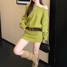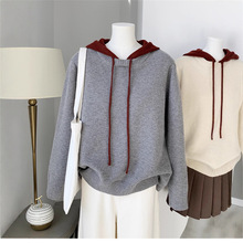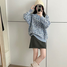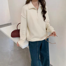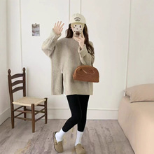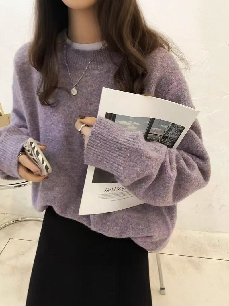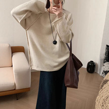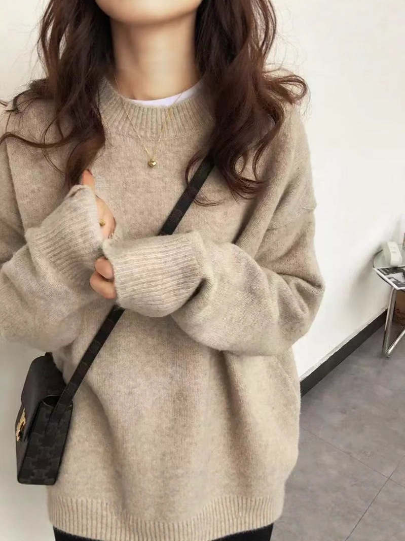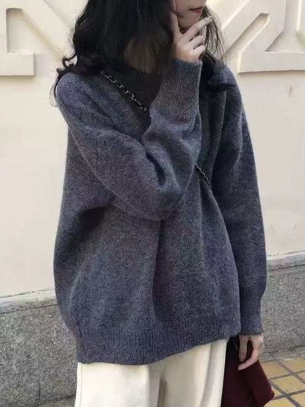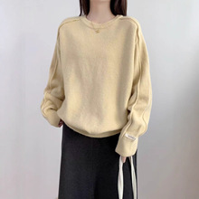 Пуловер с круглым вырезом, трикотаж для женщин на осень и зиму, новый трансграничный свободный ретро-ленивый стиль, чистый цвет, мягкий восковой утолщенный трикотаж для женщин