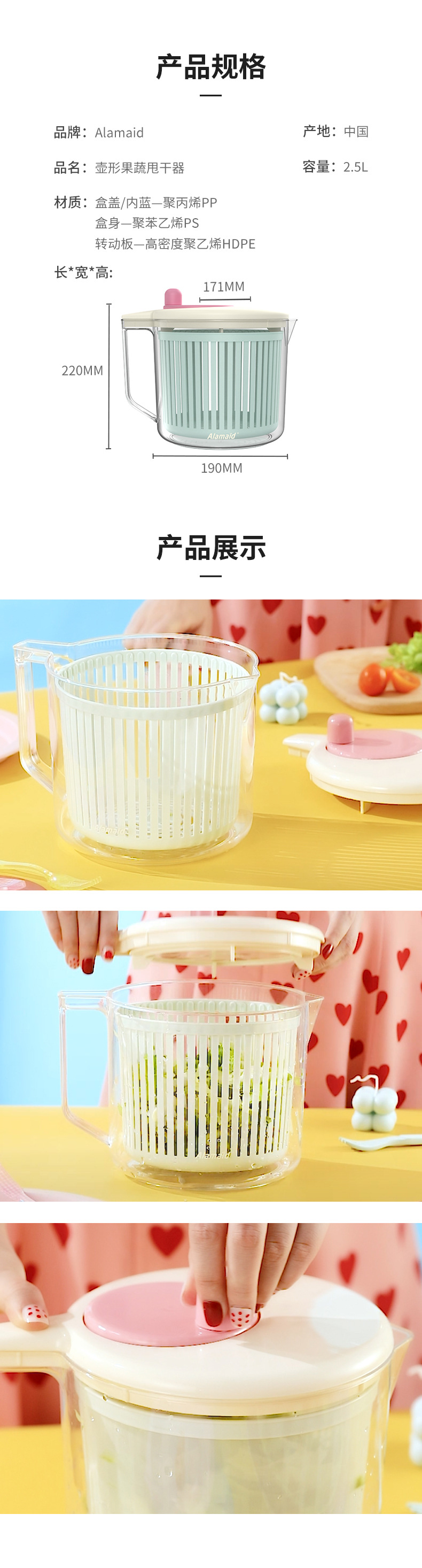 Стильная ручная овощесушилка с ручкой, кухонная сушилка для салатов, овощей и фруктов, а также для мытья овощей.