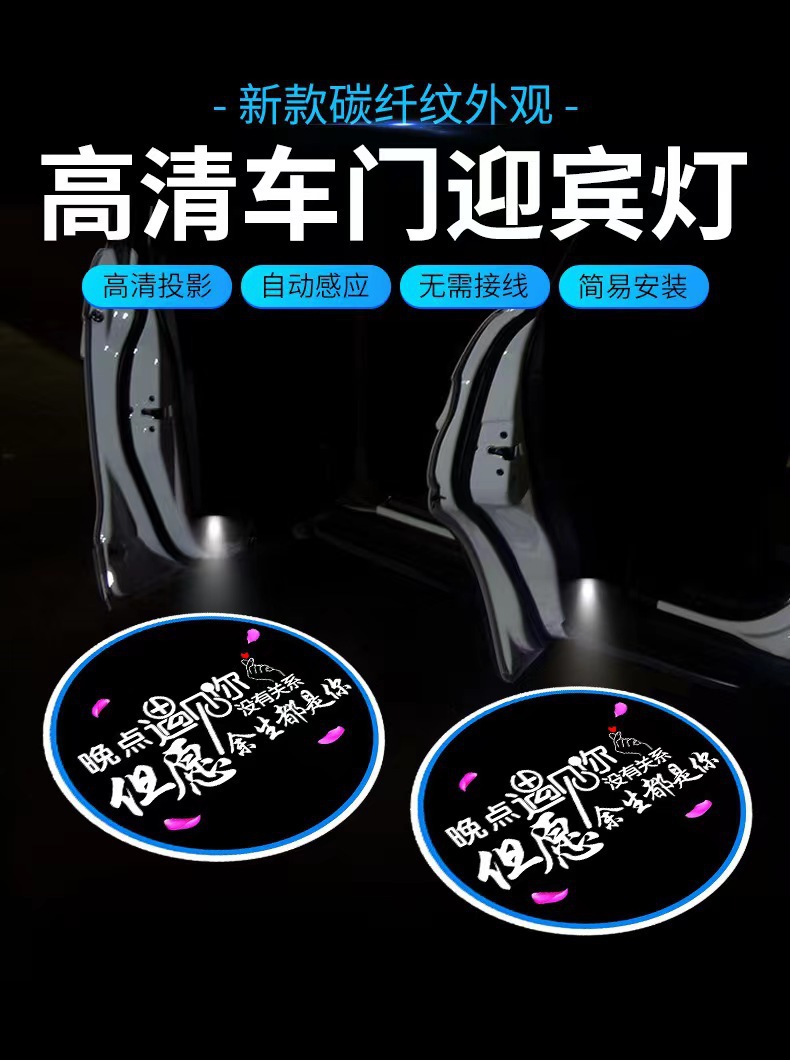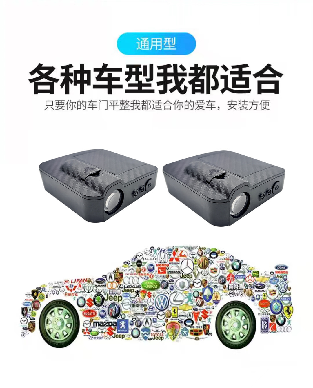 Автозапчасти, автомобильный логотип, напольный светильник для приветствия, без проводов, углеродное волокно, инфракрасный датчик двери, проекционный светильник