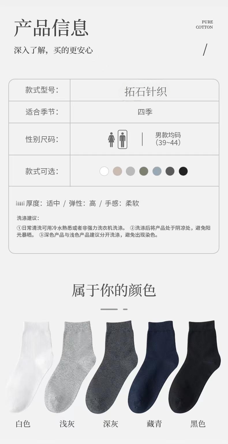 Средний цилиндр: черный; Средний цилиндр: белый; Средний цилиндр: светло-серый; Средний цилиндр: темно-серый; Средний цилиндр: тибетский зеленый; Средний цилиндр: черный, белый, серый, темно-синий; Корабли носки: белый; Корабли носки: черный; Корабельные носки: серый; Корабли носки: черный и белый серый; Индивидуальный заказ упаковки