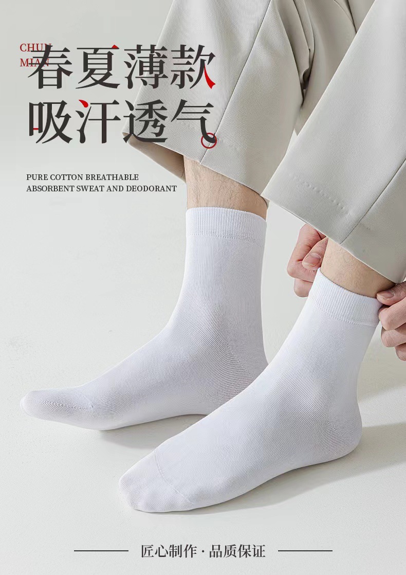 Носки мужские средние весенние и осенние тонкие спортивные чулки черные белые приливные носки поглощающие пот дикие дышащие спортивные мужские носки