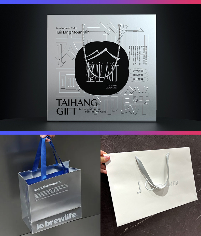 Индивидуальная консультация по сумке, обслуживание клиентов; Экономичный бумажный пакет; Перфорированный бумажный пакет на шнурке; Бумажный пакет с лентой внутри.