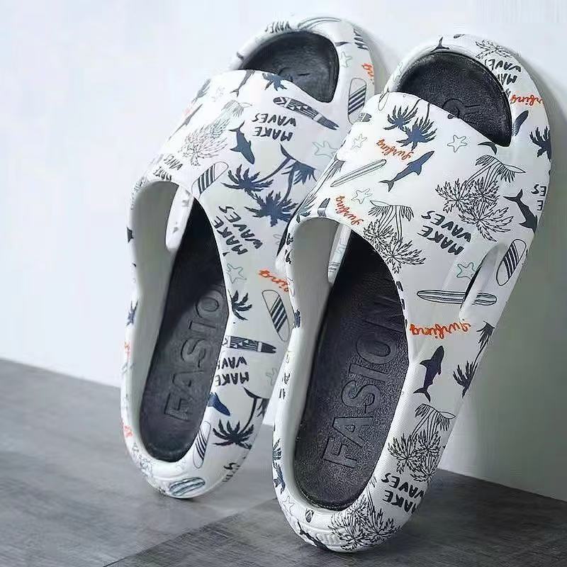 Мужские тапочки, тапочки в корейском стиле с принтом для дома и улицы, нескользящие тапочки для ванной, парные, молодежные и модные.