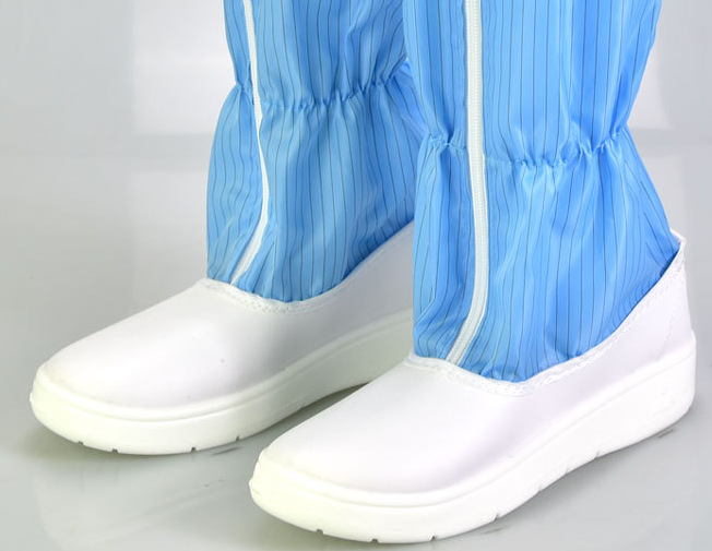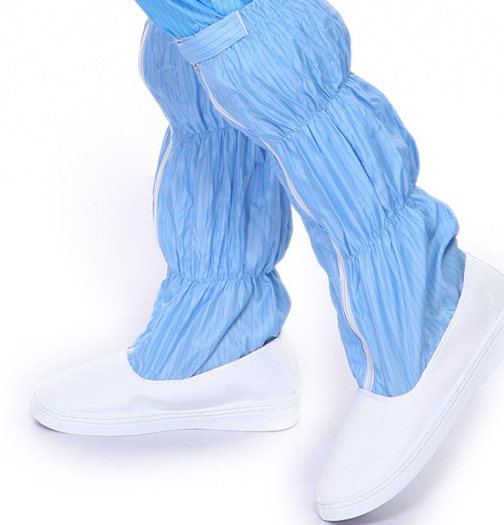 Высокие ботинки антистатической кожи дна ПВК Твердые полосатые голубые и белые чистые ботинки работы для чистой комнаты