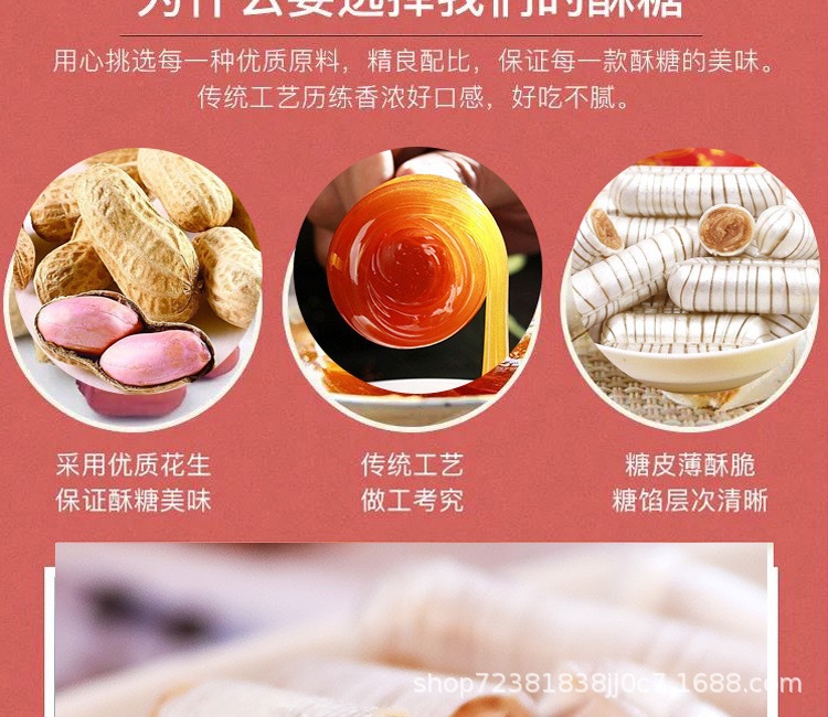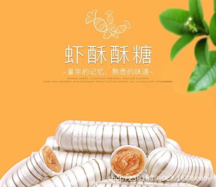 Сироп сорго 500 г; Нуга 500 г; Дуриан молочный без сахара 500 г; Кукуруза со вкусом мягкой конфеты 500 г; Апельсиновый ароматизированный помадка; Пурпурный сахар 500 г; 500 г креветки хрустящие; Коровья кожа, конфеты, 500 г