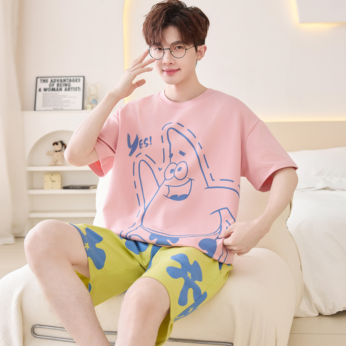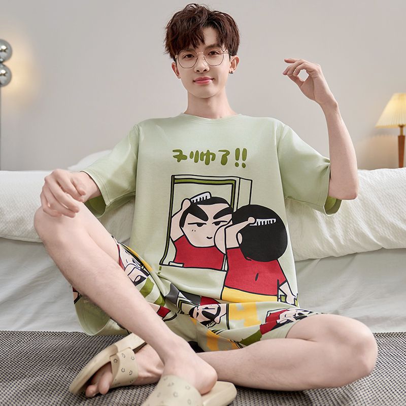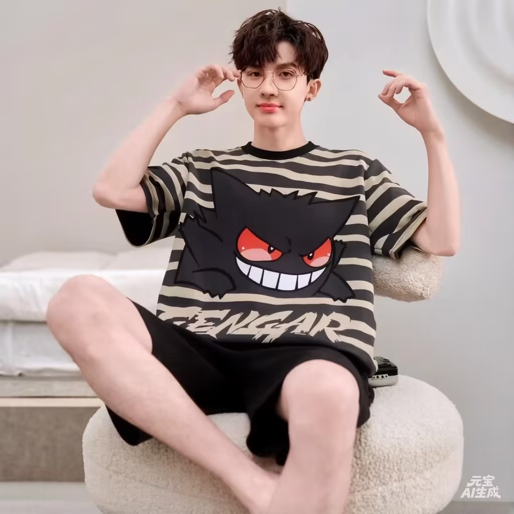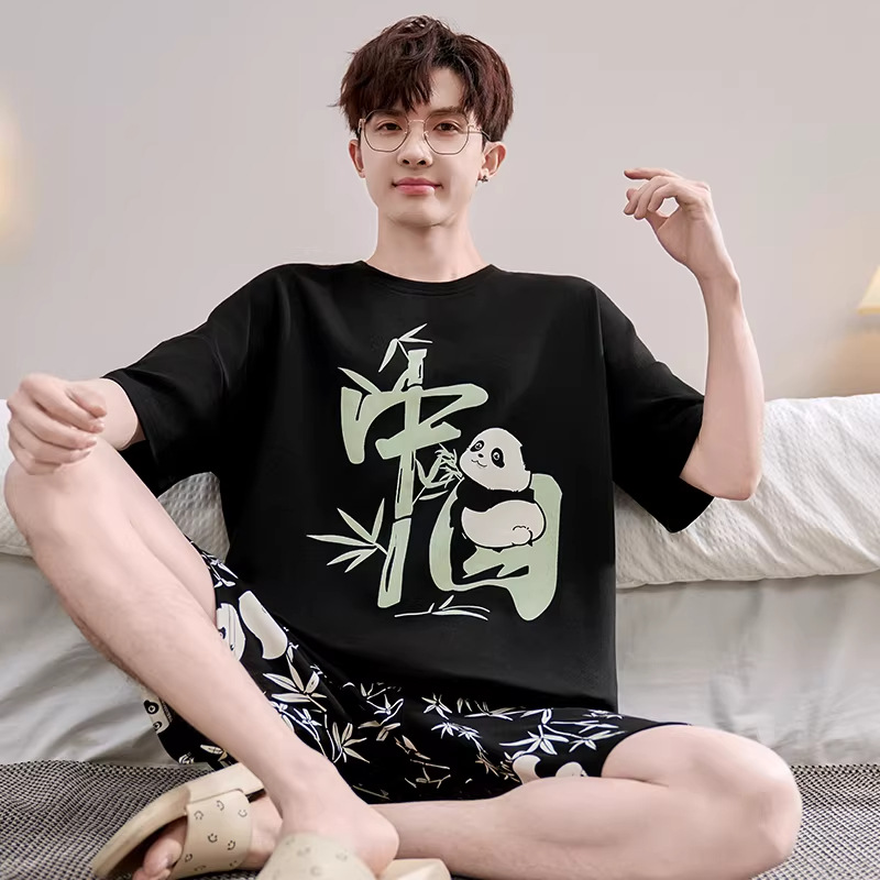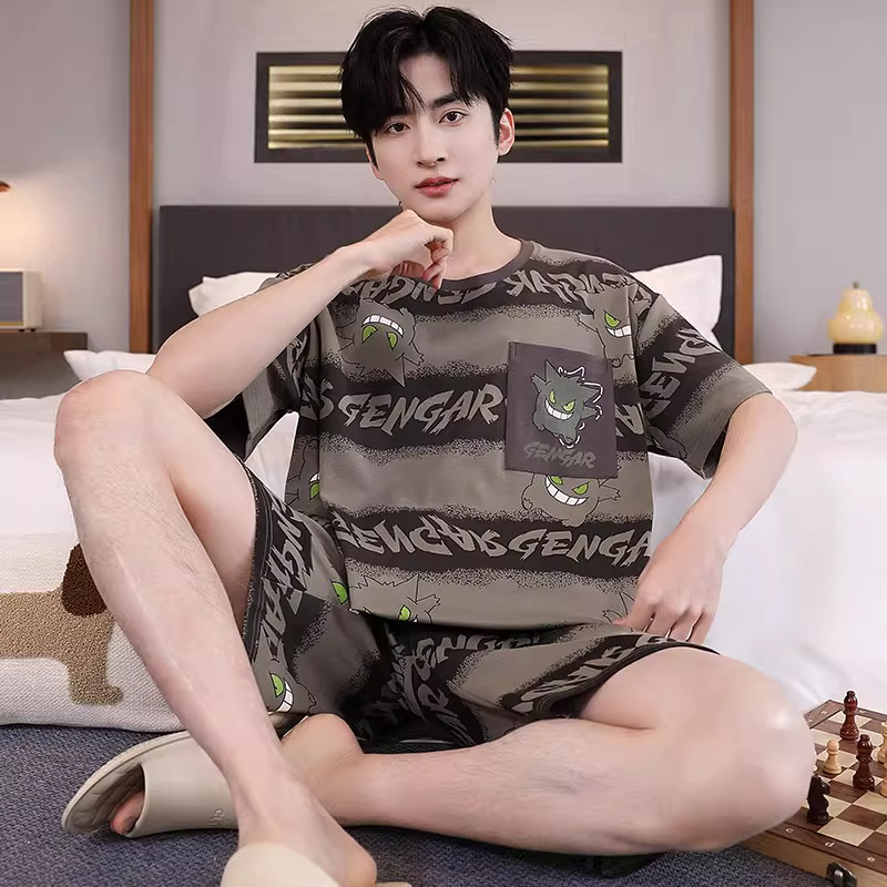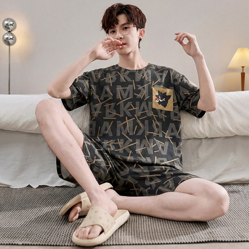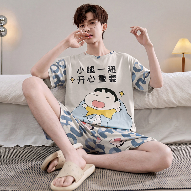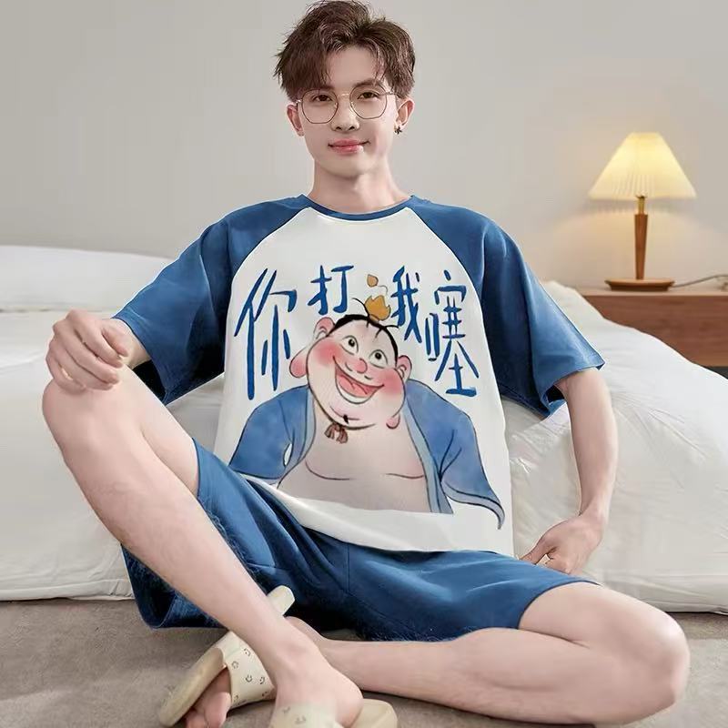 Летние пижамы 2025 для мужчин, молодежные спортивные короткие рукава, свободный повседневный домашний костюм больших размеров, можно носить на улице