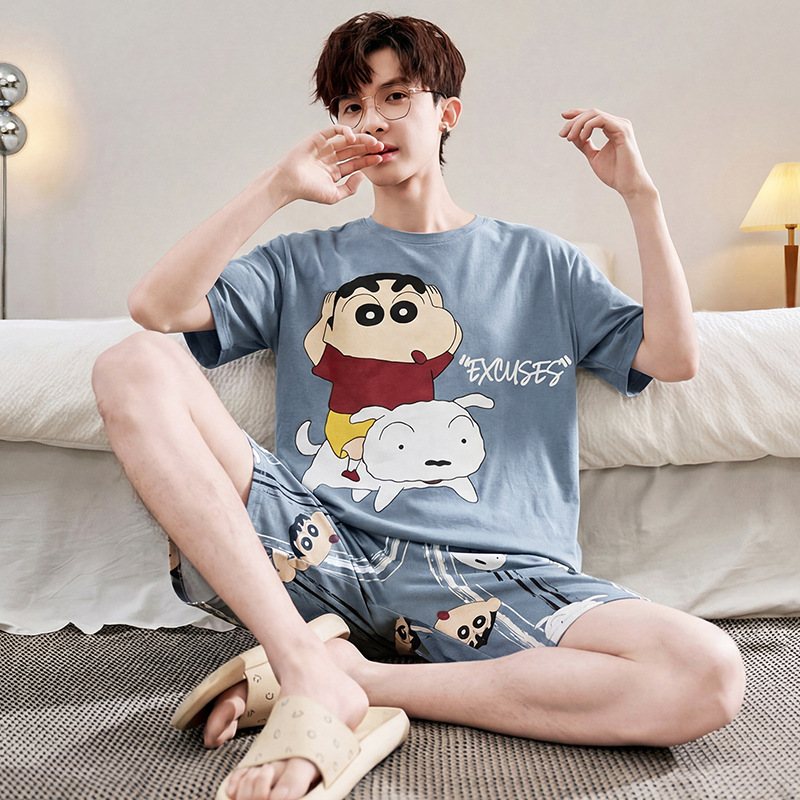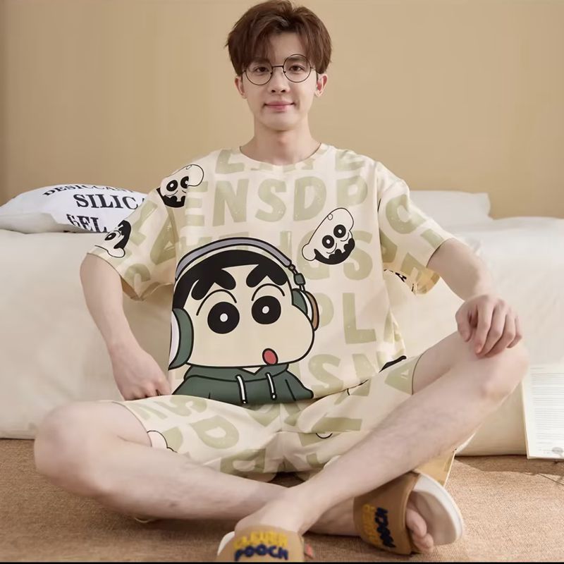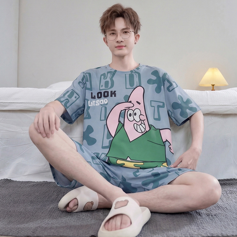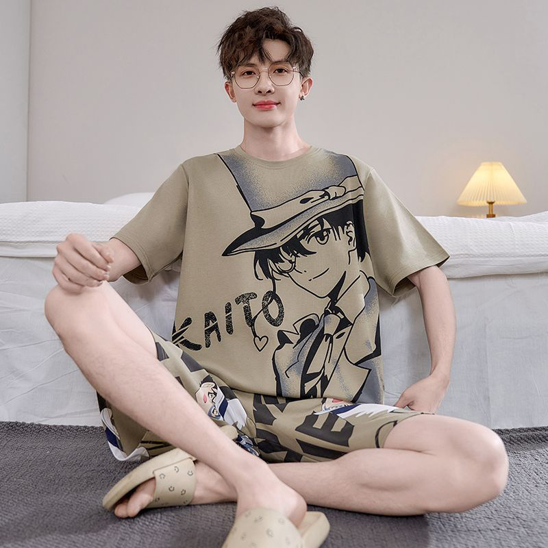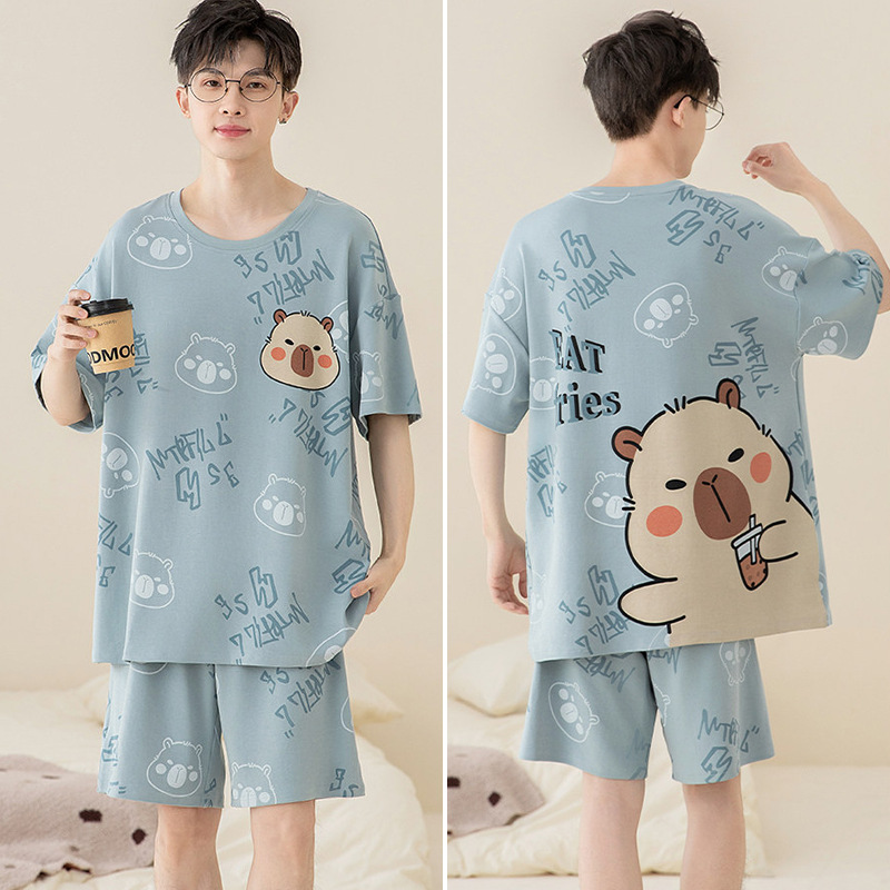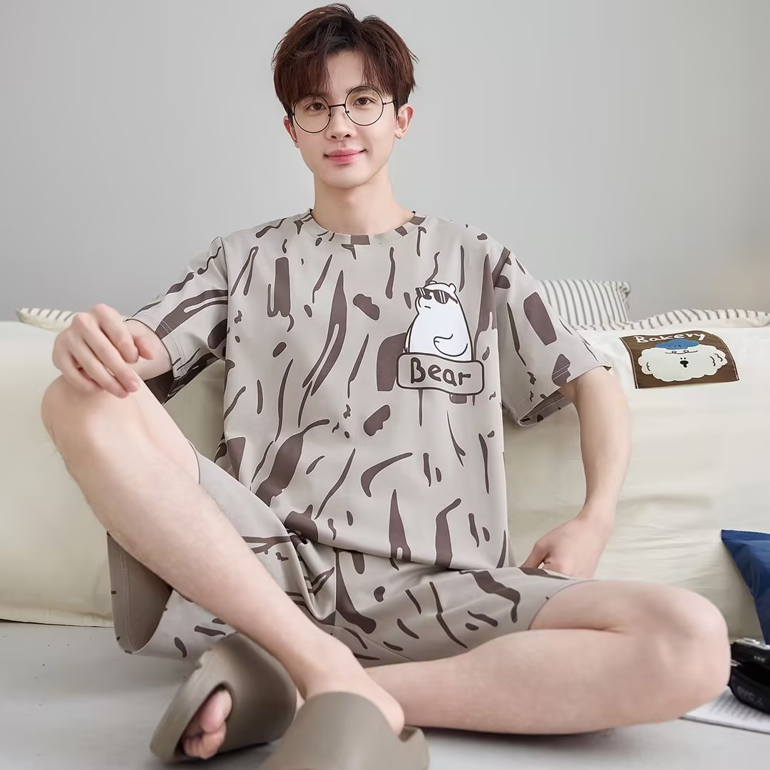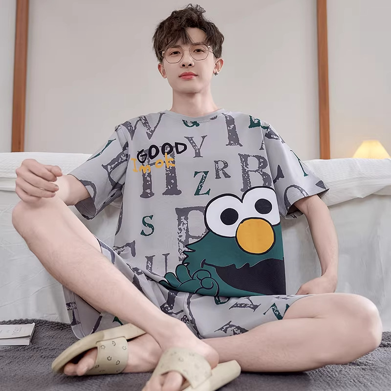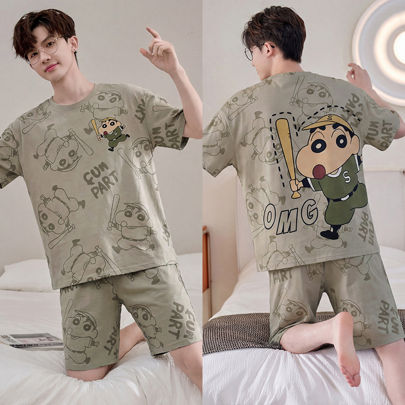 Летние пижамы 2025 для мужчин, молодежные спортивные короткие рукава, свободный повседневный домашний костюм больших размеров, можно носить на улице