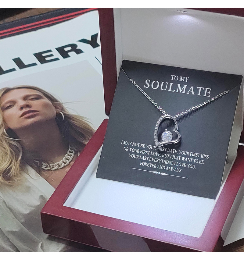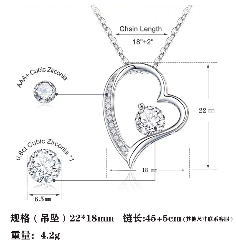 Ожерелье с бриллиантами из нержавеющей стали, трансграничное Европейское и американское модное, цепочка на ключицу из титановой стали Joker, циркон, подвеска в форме сердца, полная дрель