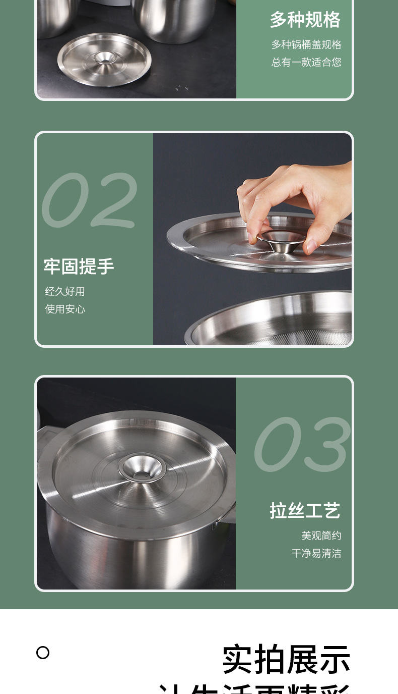 Крышка из нержавеющей стали круглая утолщенная Универсальная крышка для кастрюли большая крышка ствола плоская крышка Тонущая стальная крышка немагнитная Пылезащитная крышка оптом