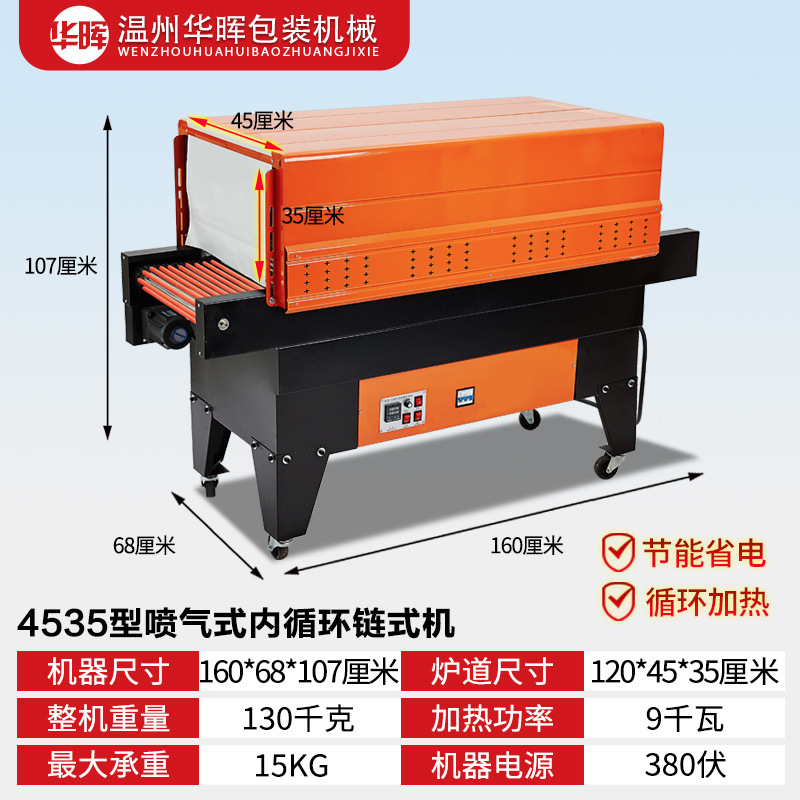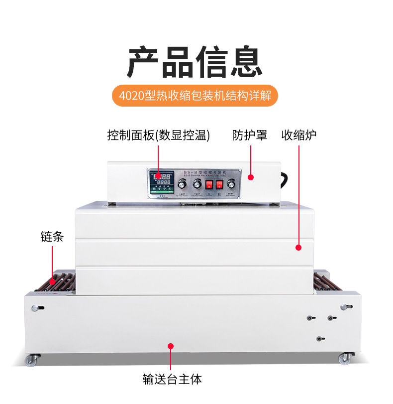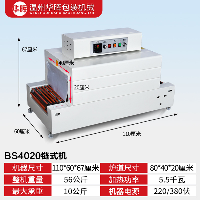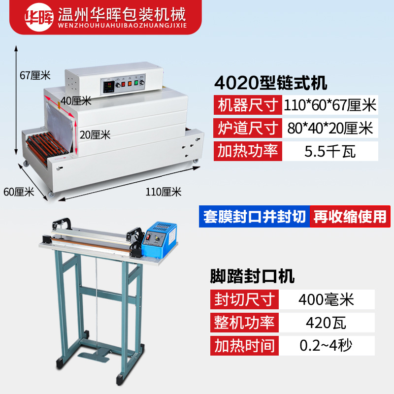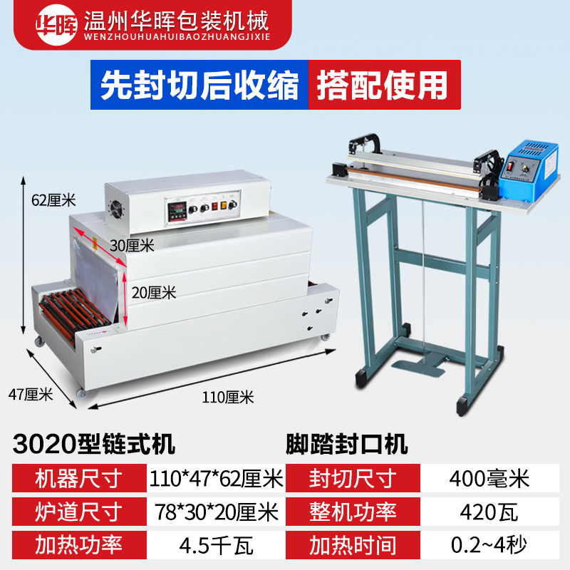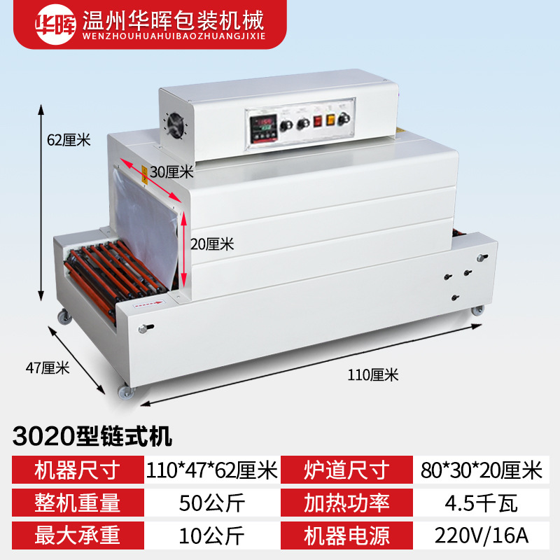 Тип цепи 3020 (220 В/16 А); Тип сетки 3020 (220 В/16 А); Тип цепи 4020 (220 В/380 В); Тип сети 4020 (220 В/380 В); Рекомендованная производителем комбинация (проходной тип педали + тип цепи 3020); Рекомендованная производителем комбинация (сквозная педаль + тип цепи 4020); Тип цепи 4525 (220 В/380 В); Тип цепи 4035 (220 В/380 В); Тип цепи 6030 (220 В/380 В); Тип цепи 6040 (380 В); Тип цепи внутреннего циркуляции 4525 (нагревательная трубка из нержавеющей стали); 4535 тип цепи внутреннего циркуляции струи (нагревательная трубка из нержавеющей стали); Полуавтоматическая машина для запечатывания и резки 450 л + термоусадочная машина 4020 л; Машина для запечатывания и резки 450 л + машина для термоусадки 4020 л