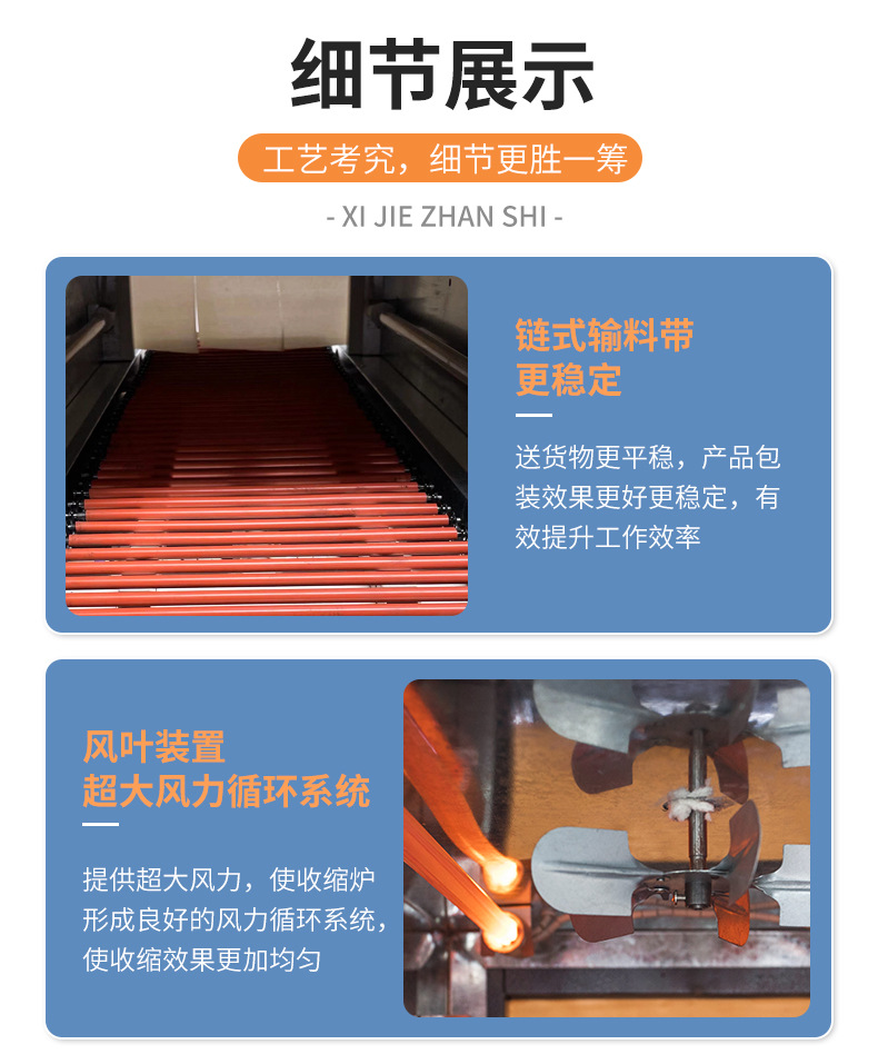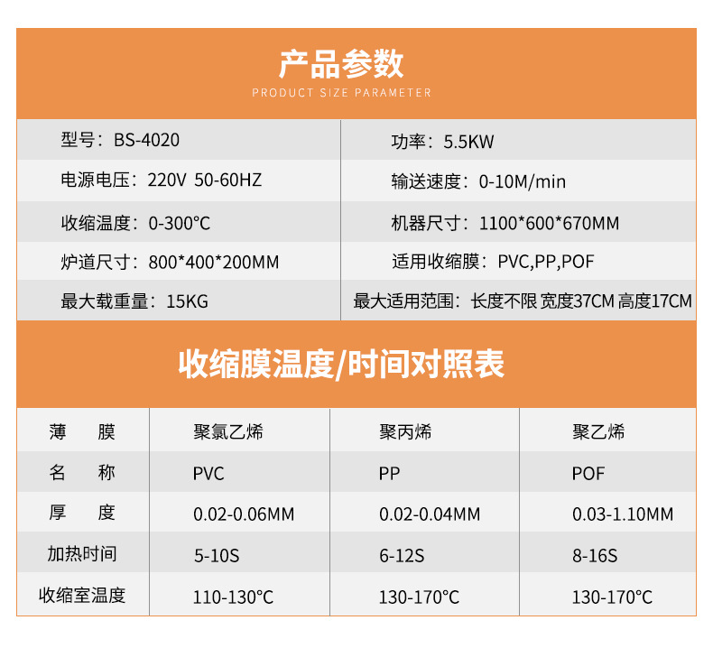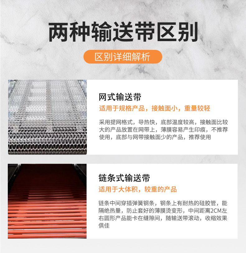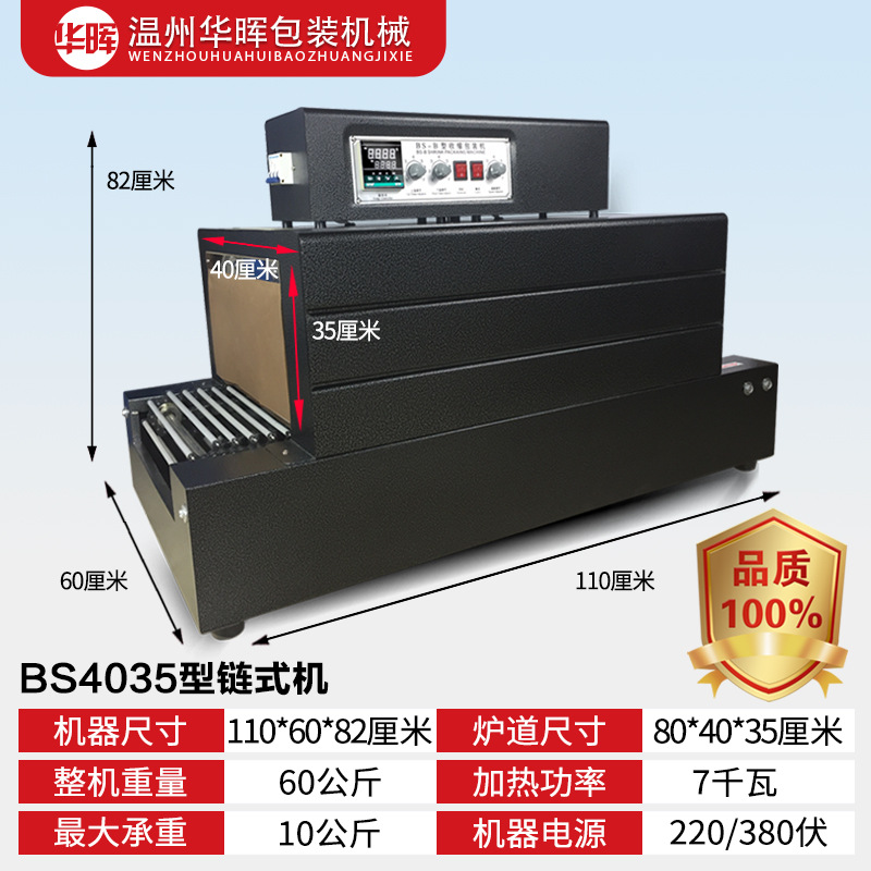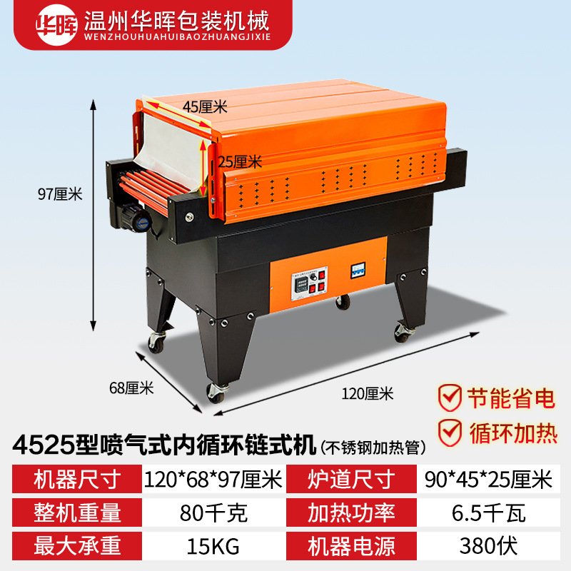 Тип цепи 3020 (220 В/16 А); Тип сетки 3020 (220 В/16 А); Тип цепи 4020 (220 В/380 В); Тип сети 4020 (220 В/380 В); Рекомендованная производителем комбинация (проходной тип педали + тип цепи 3020); Рекомендованная производителем комбинация (сквозная педаль + тип цепи 4020); Тип цепи 4525 (220 В/380 В); Тип цепи 4035 (220 В/380 В); Тип цепи 6030 (220 В/380 В); Тип цепи 6040 (380 В); Тип цепи внутреннего циркуляции 4525 (нагревательная трубка из нержавеющей стали); 4535 тип цепи внутреннего циркуляции струи (нагревательная трубка из нержавеющей стали); Полуавтоматическая машина для запечатывания и резки 450 л + термоусадочная машина 4020 л; Машина для запечатывания и резки 450 л + машина для термоусадки 4020 л