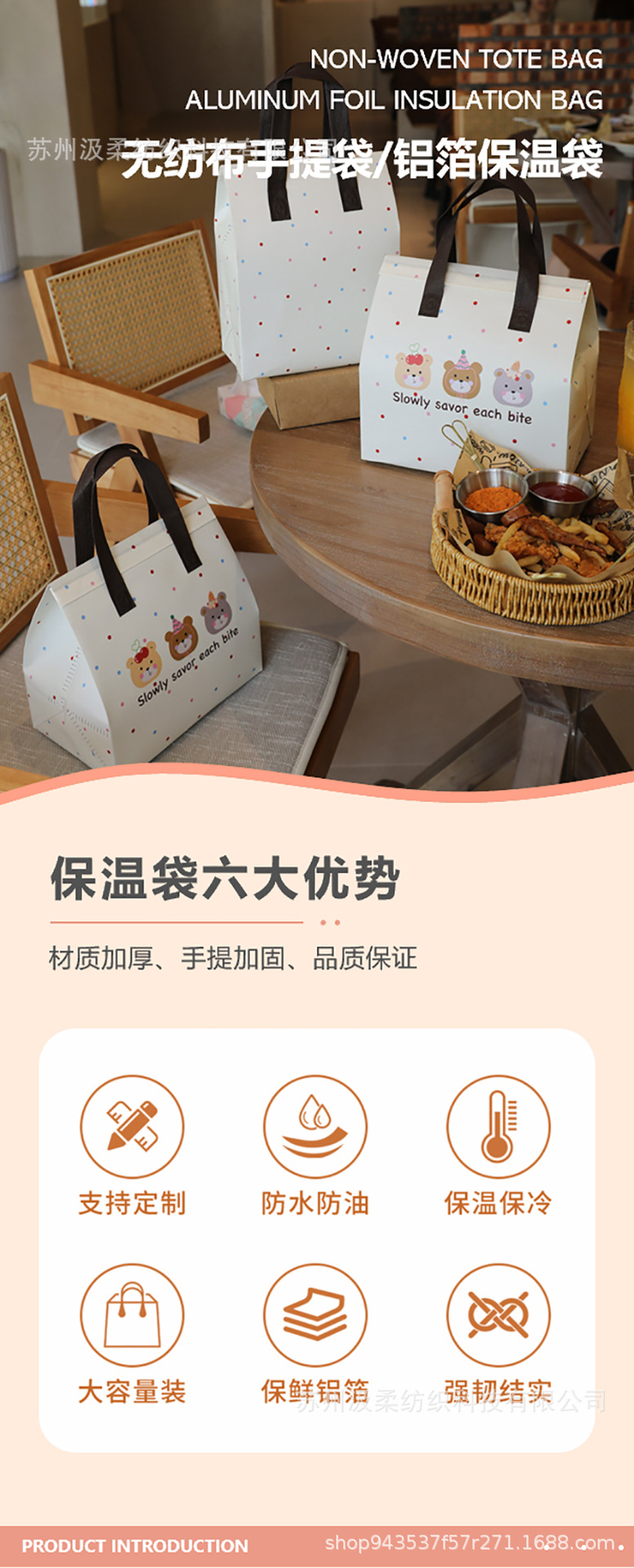 Устранимая Алюминиевая фольга Сумки термоизоляции принимает-вне особенная коммерчески барбекю чая молока десерта печь не-сплетенную портативную сумку упаковки