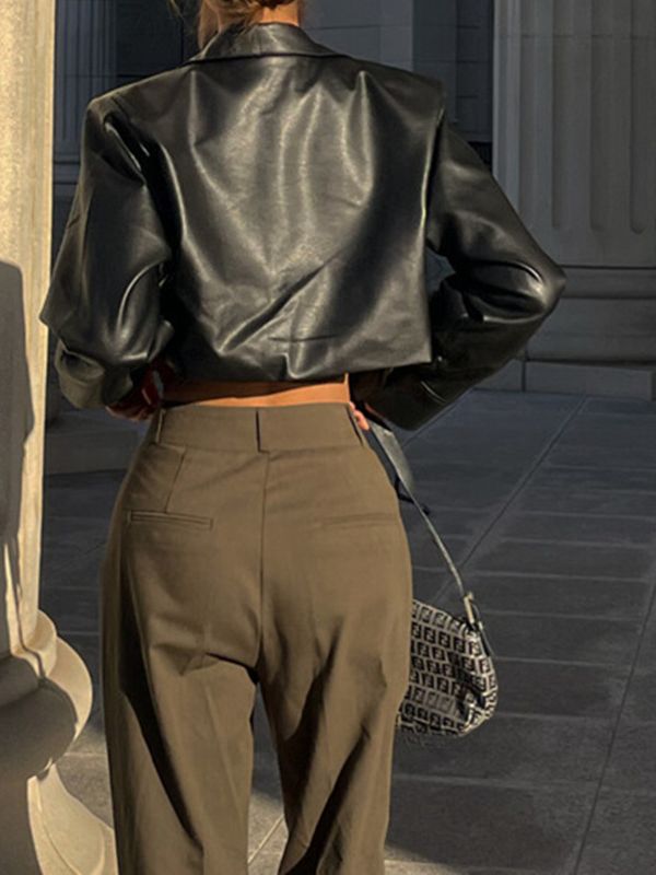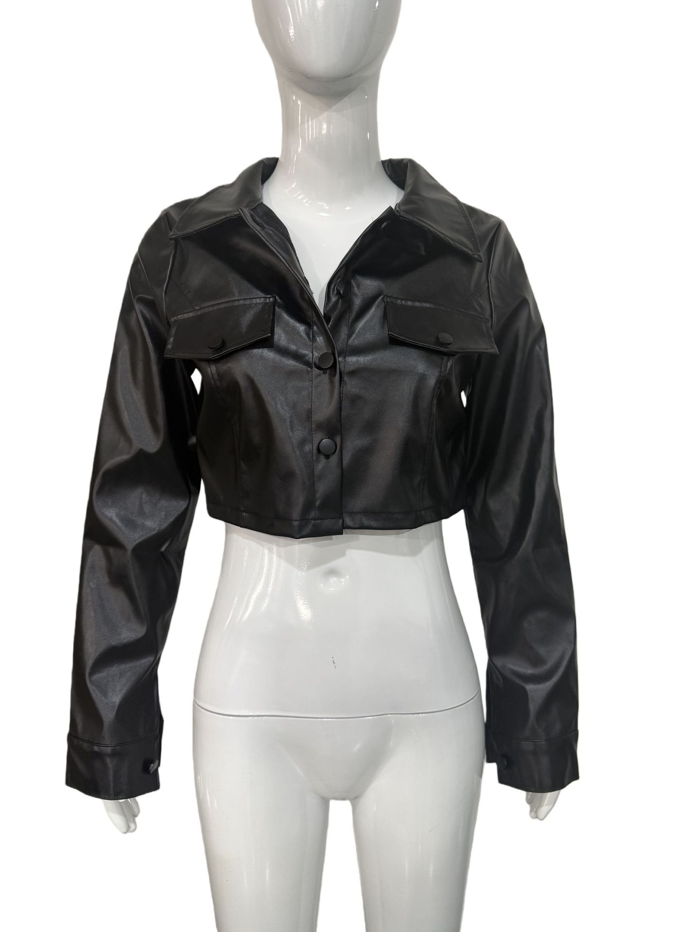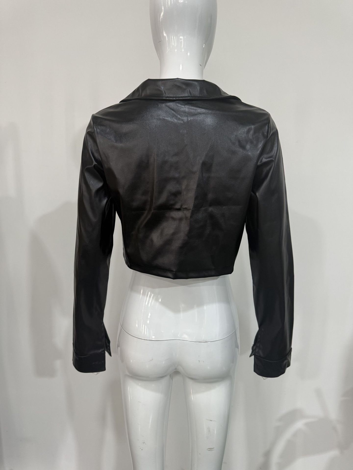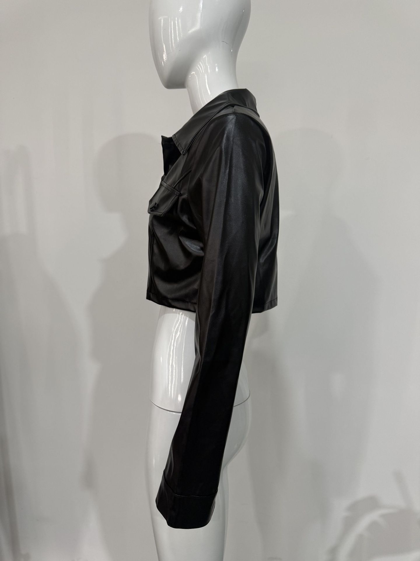 Европейский и американский стиль, осень 2025, хит продаж на AliExpress: женская сексуальная укороченная куртка-байкер, однобортное пальто