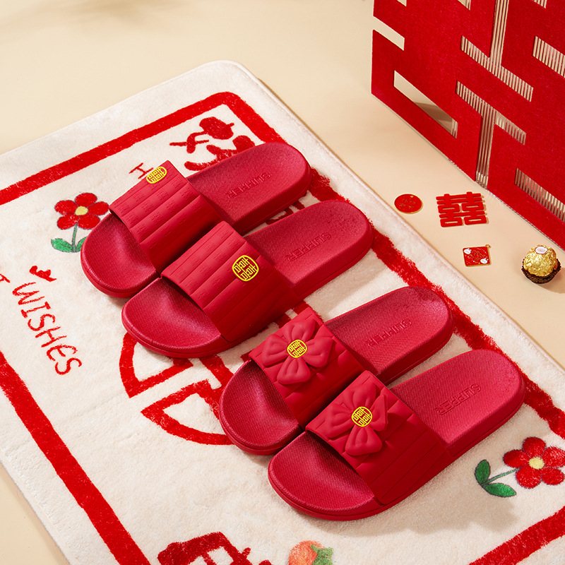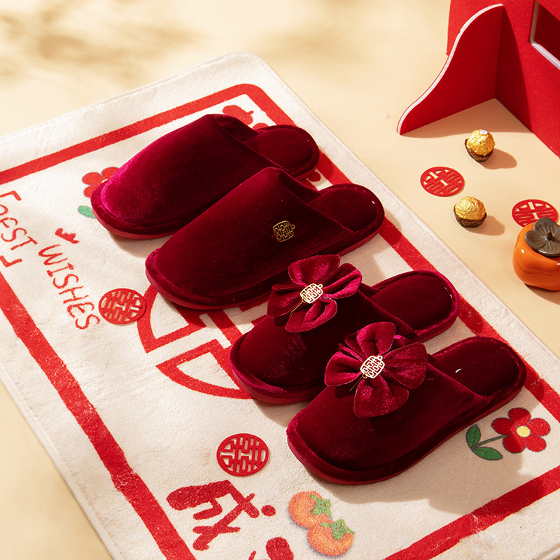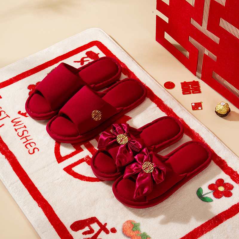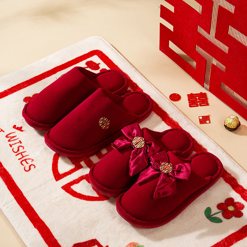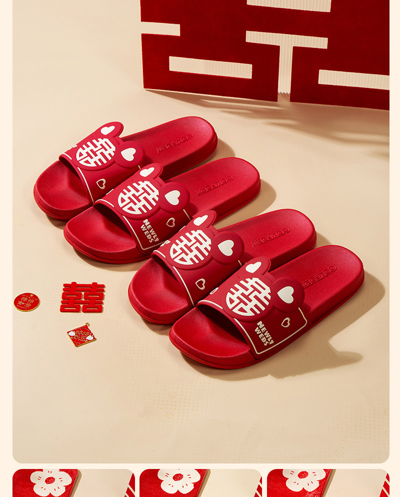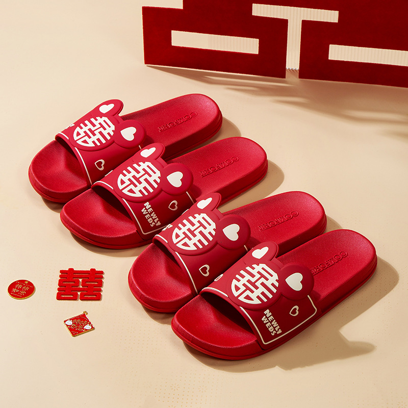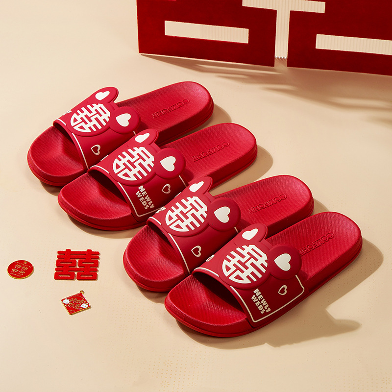 Свадебные Тапочки Пара праздничные красные пара крытые летние домашние Ванная комната Ванна Нескользящие тапочки для женщин