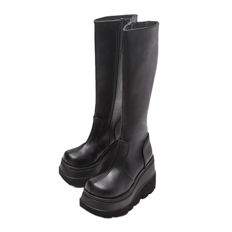 Европейские и американские длинные сапоги на танкетке в готическом стиле с маленькими бочками и толстой подошвой, мотоциклетные ботинки для всадников, но высокие сапоги до колена с большой головкой для похудения