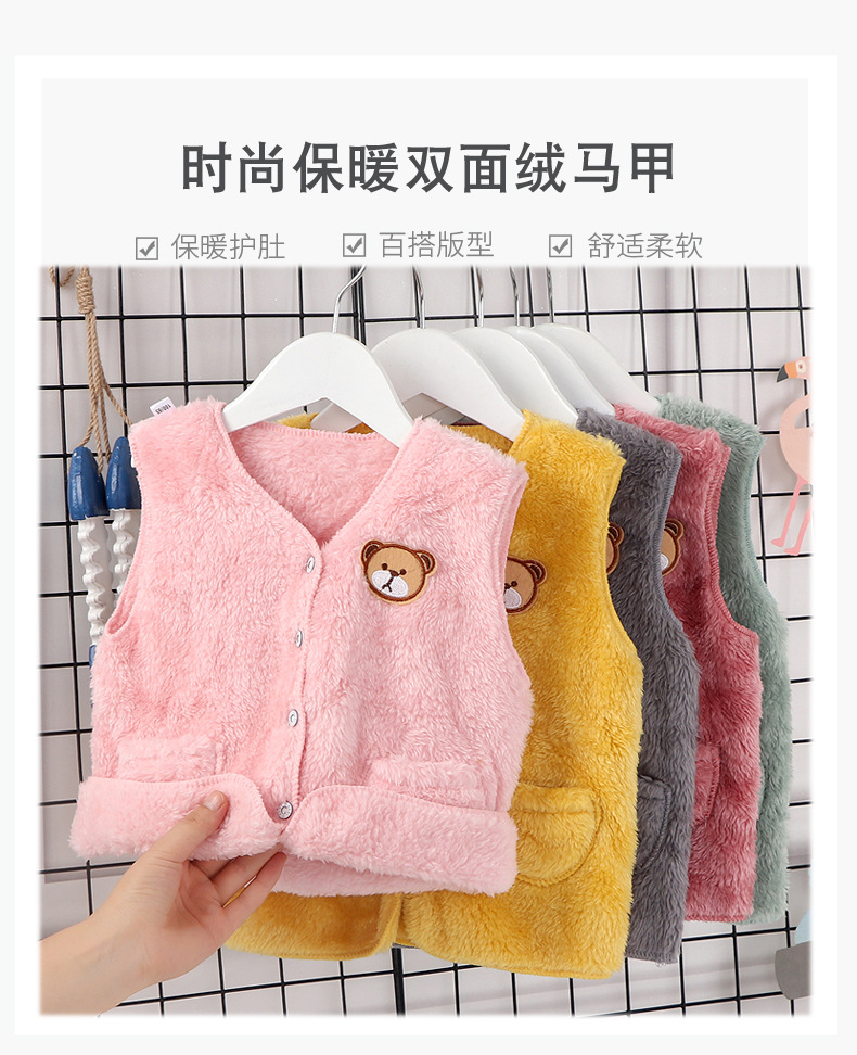 Новый детский жилет, весенне-осенний двухсторонний жилет из кораллового флиса на флисовой подкладке для мальчиков и девочек, фланелевый теплый жилет в Корейском стиле