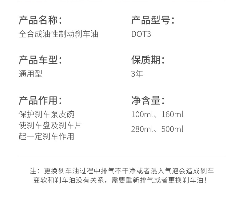 [D0T3] 100 мл тормозного масла 1 бутылка; [D0T3] 160 мл тормозного масла 1 бутылка; [D0T3] 280 мл тормозного масла 1 бутылка; [D0T3] 500 мл тормозного масла 1 бутылка