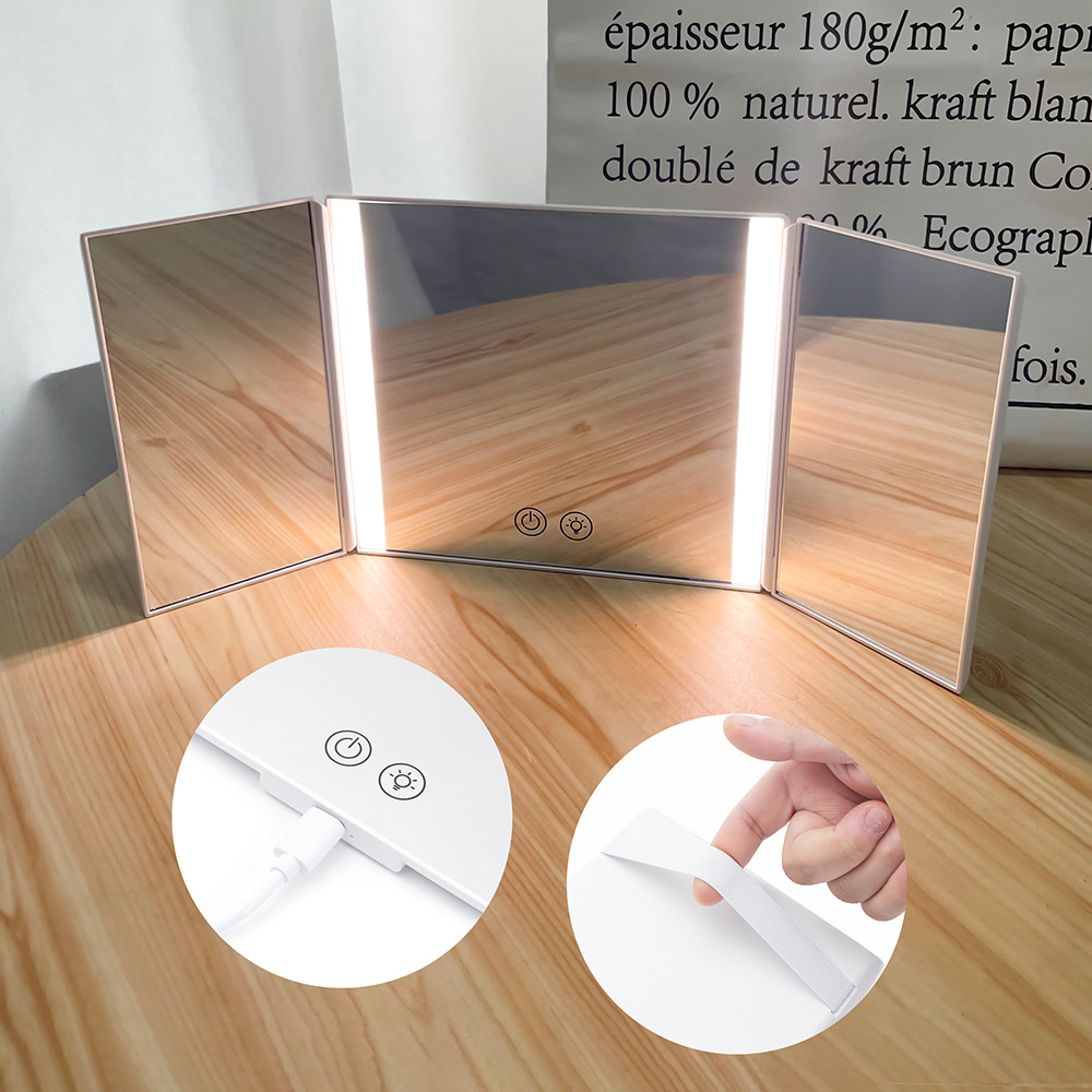 Автомобильный солнцезащитный козырек складное зеркало для макияжа с подсветкой, туалетное зеркало HD, трехстороннее зеркало для макияжа, портативное зеркало красоты