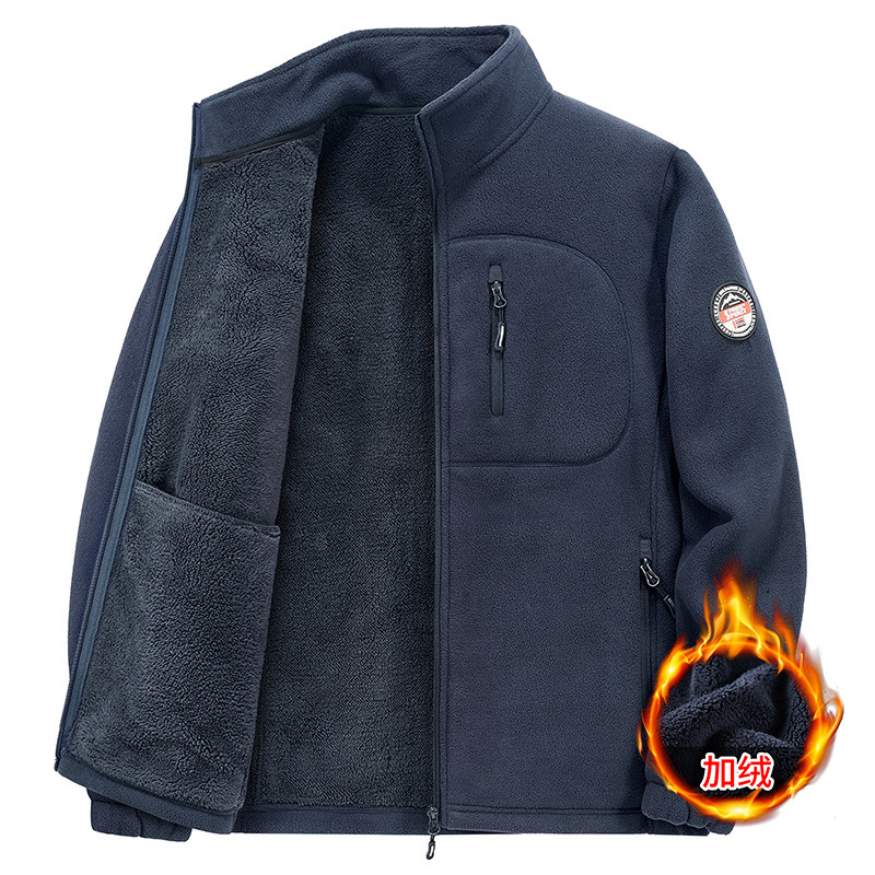 Фархатная куртка мужской осенне-зимний флисный кардиган с бархатным утолщением мужской средний возраст воротник теплый куртка топ