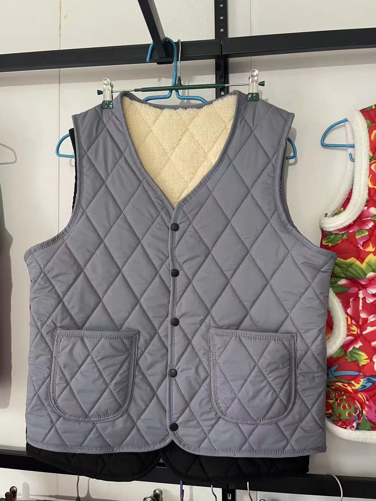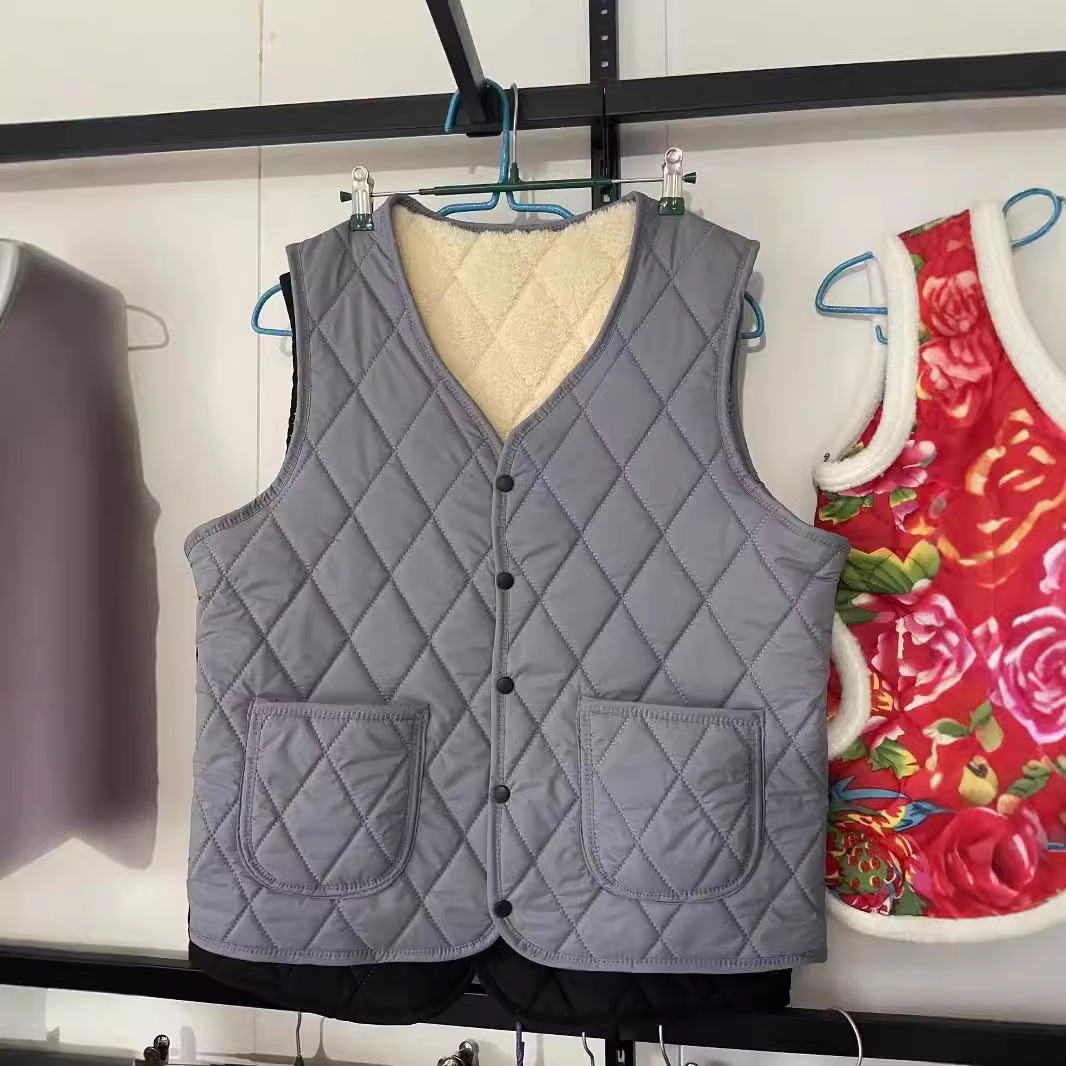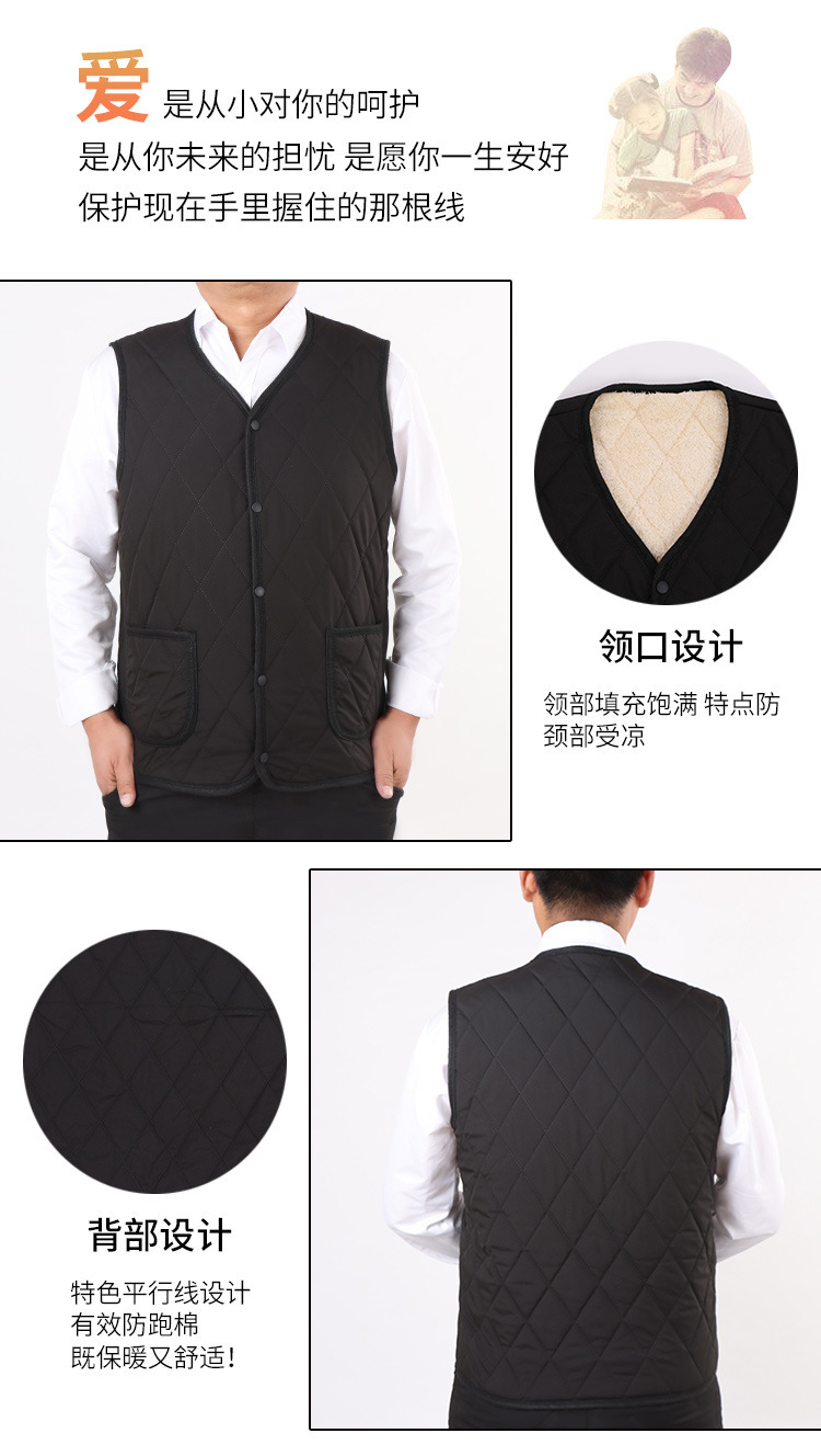 Осенне-зимний пуховый хлопковый жилет на флисовой подкладке, теплый жилет с квадратным карманом, короткая подкладка, большие размеры, мужской и женский жилет в одном стиле для среднего и пожилого возраста