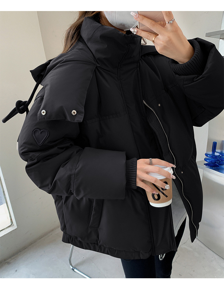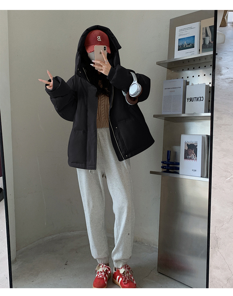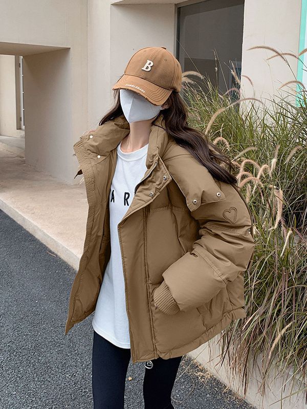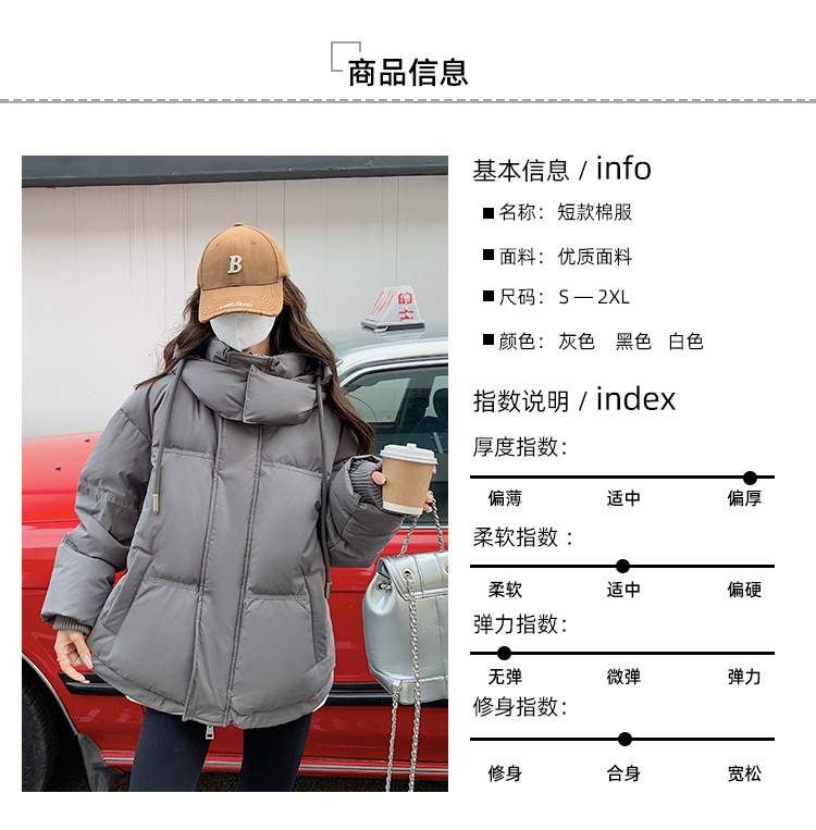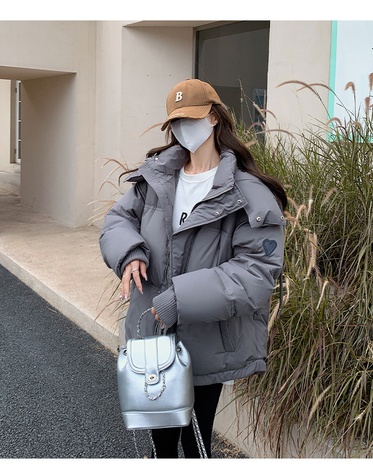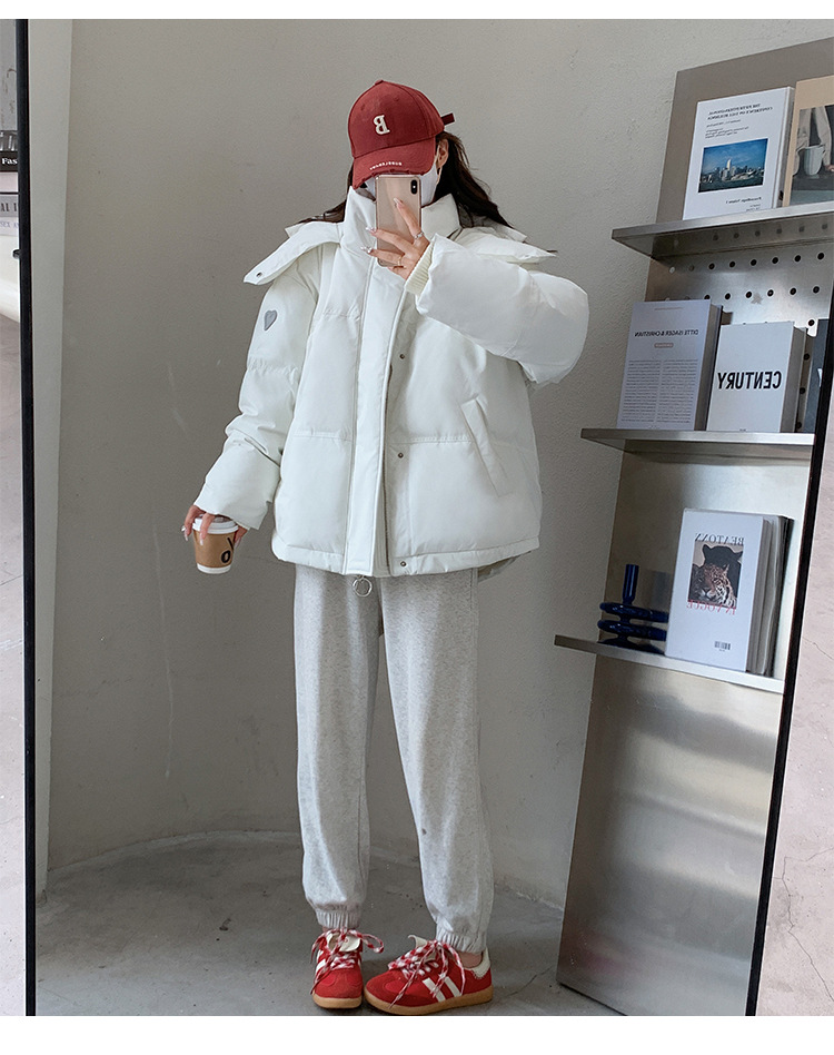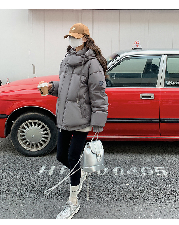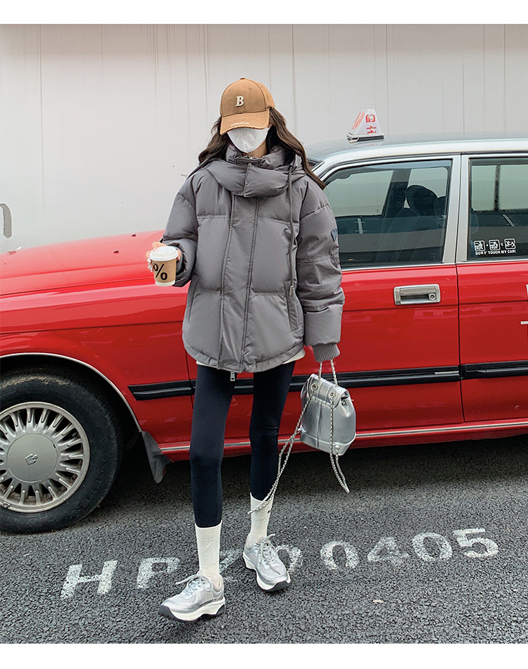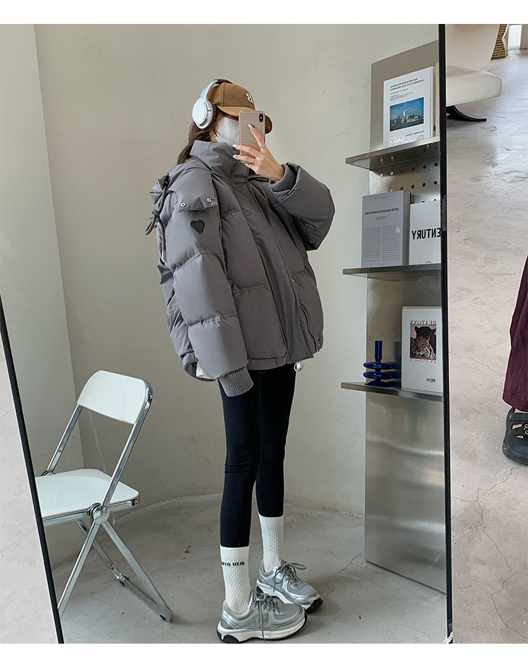 Хлопковое пальто женщина 2024 зима новая корейская версия серая любовь короткая пуховая хлопчатобумажная одежда для студентов большого размера пара хлебная одежда