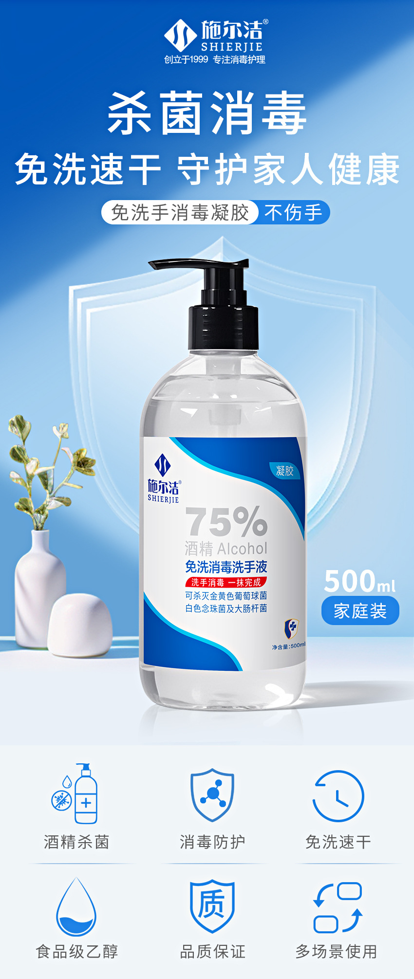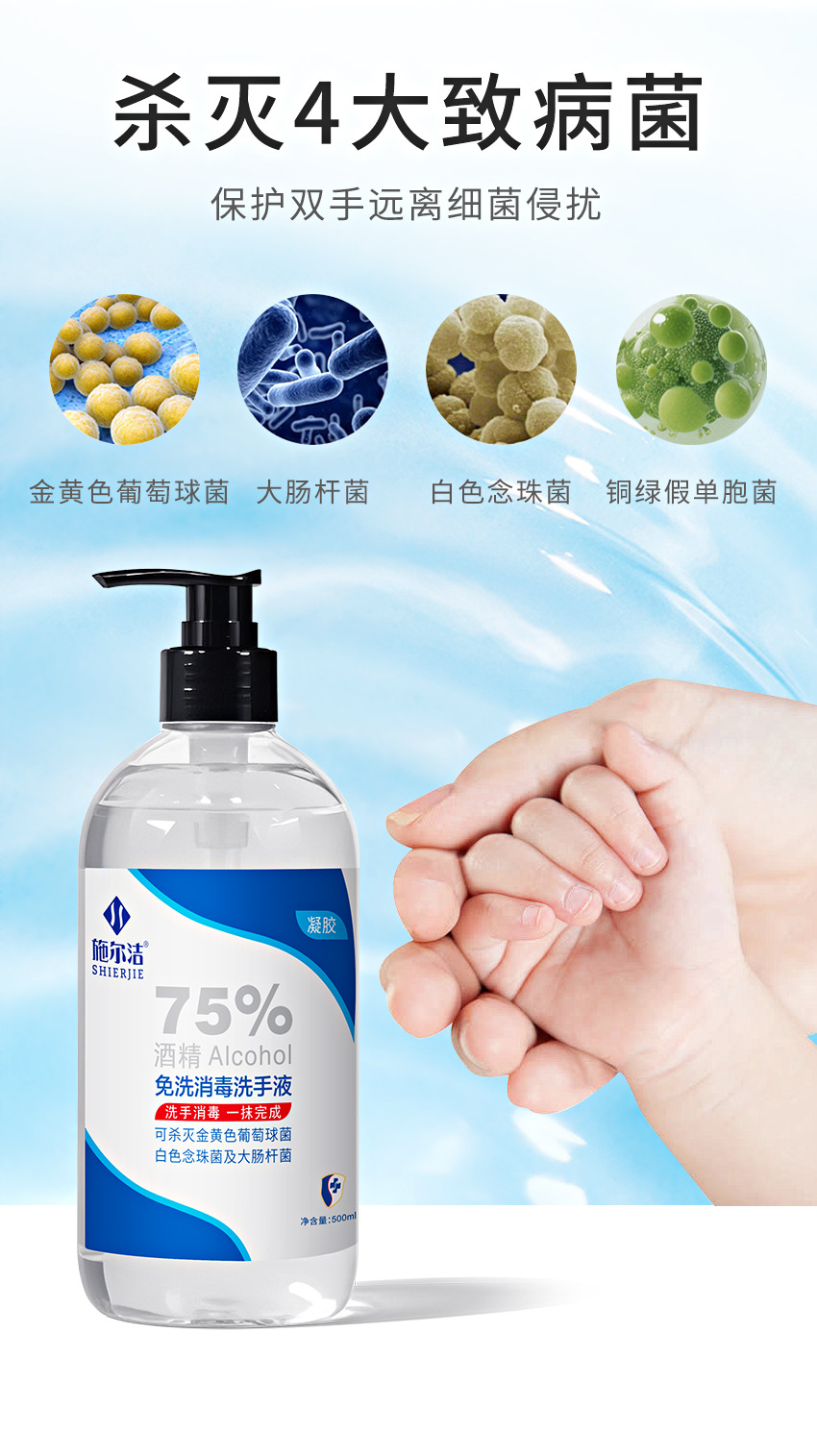 Антисептический гель для рук с 75% спиртом, 500 мл, для дома, отелей, кинотеатров, антибактериальный, без смывания, быстросохнущий, оптом
