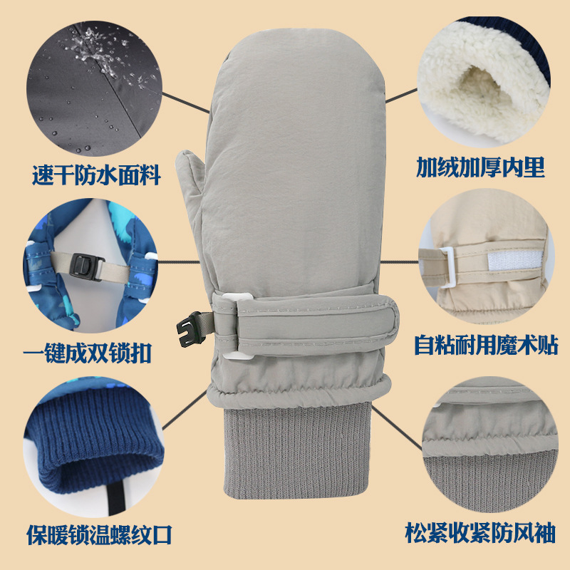 Трансграничные новые детские быстросохнущие тканевые перчатки, Детские теплые лыжные водонепроницаемые тканевые утолщенные резьбовые перчатки на флисовой подкладке