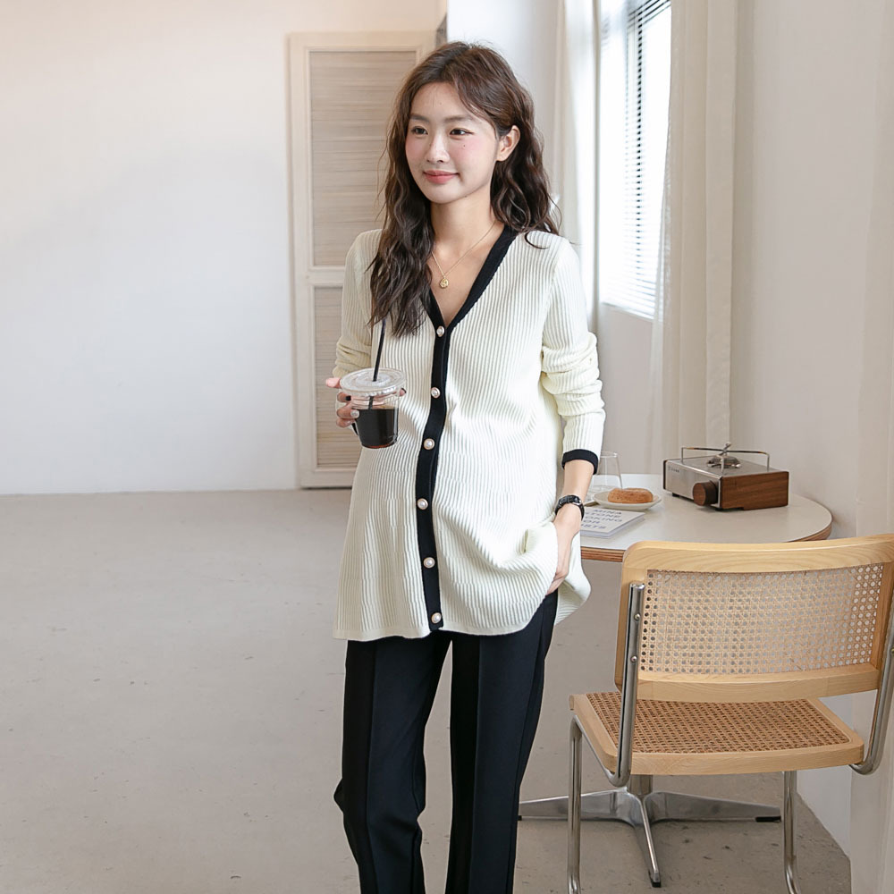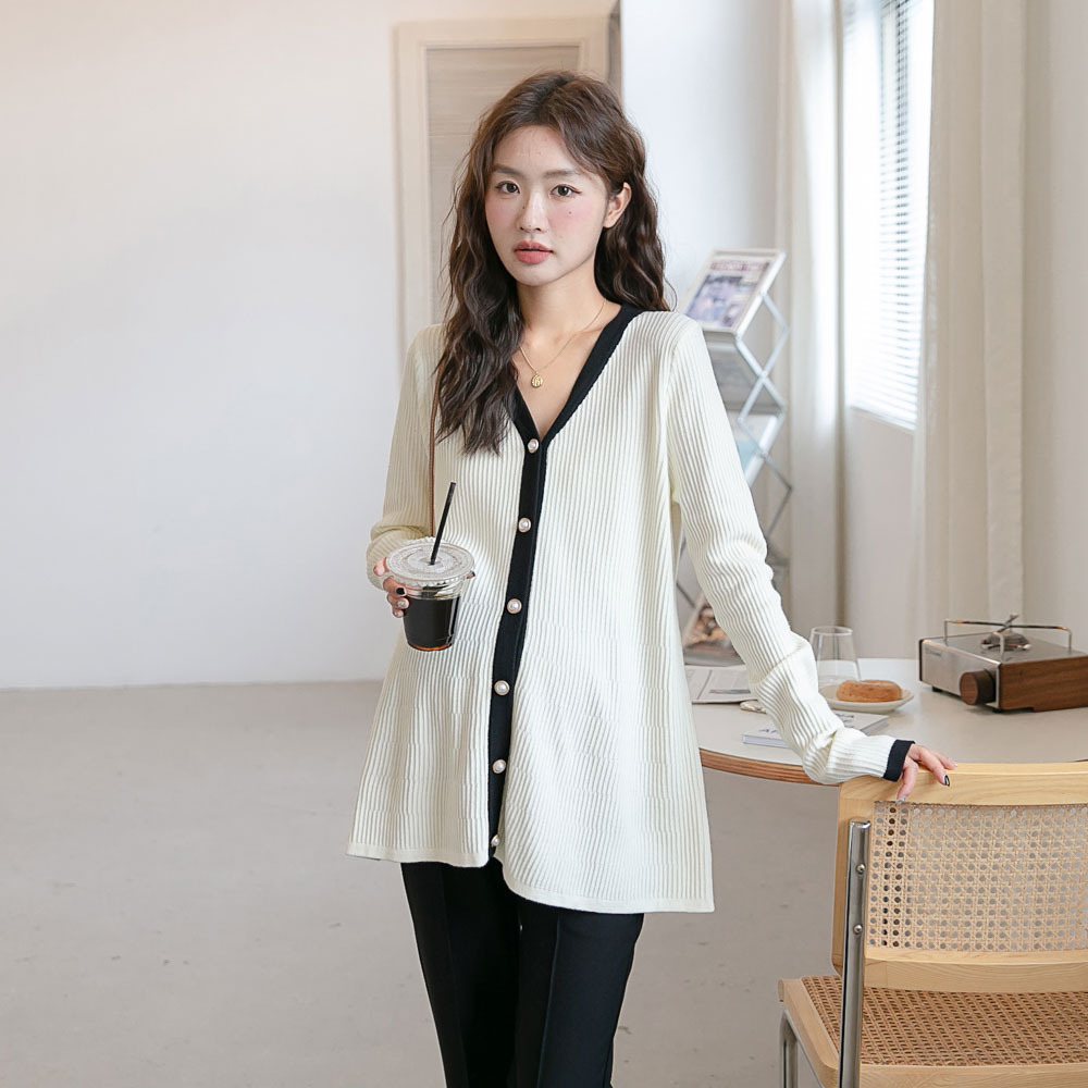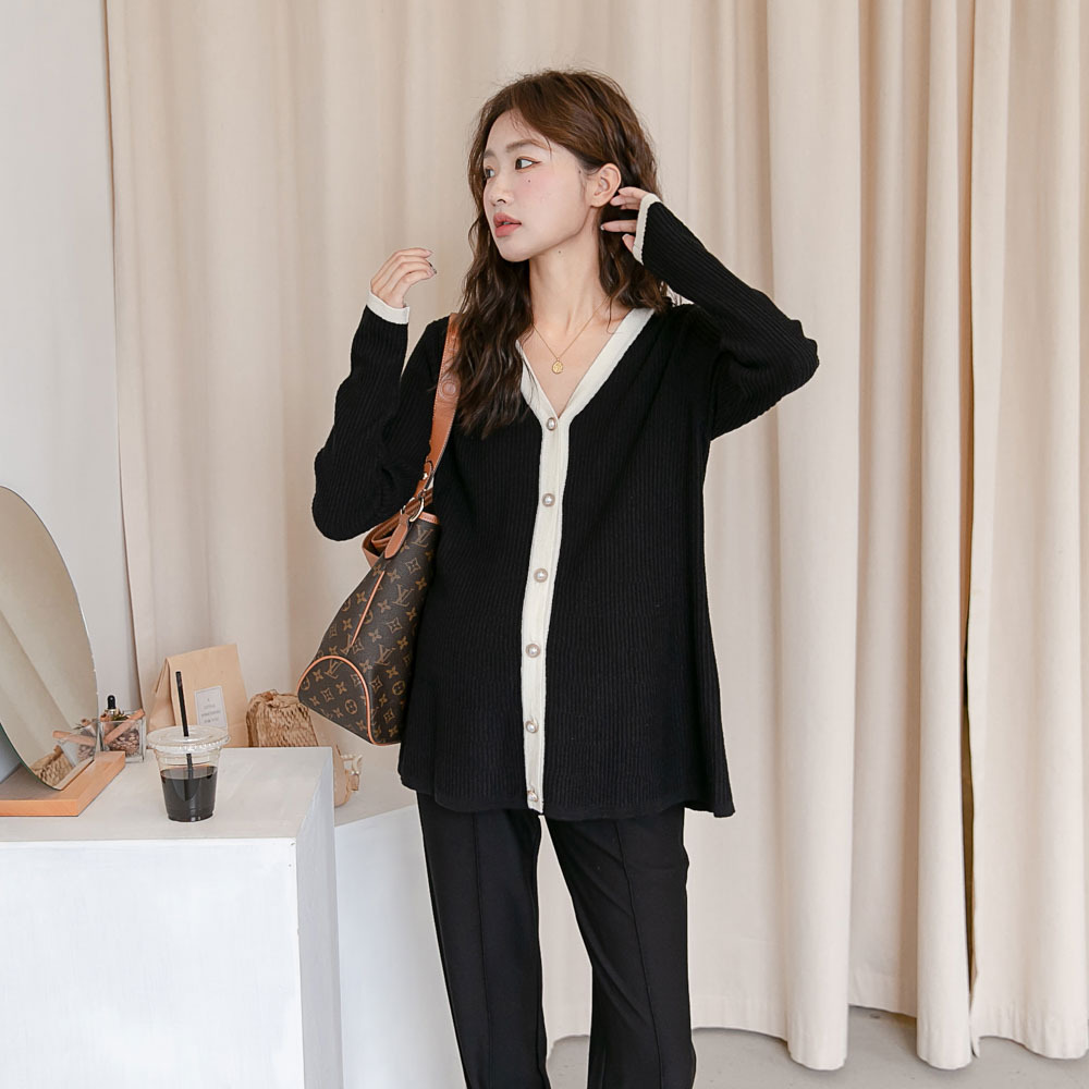 Осенняя новая одежда для беременных корейская мода контрастного цвета вязаный кардиган с V-образным вырезом в западном стиле возрастное пальто в стиле Шанель Мода