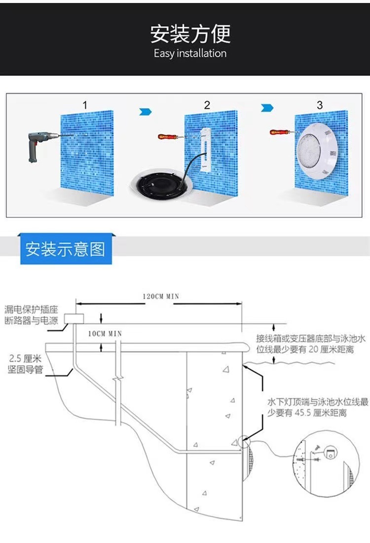 Трансграничный светодиодный настенный свет для бассейна большой Aike открытый водонепроницаемый 12V настенный бассейн IP68 красочный пульт дистанционного управления подводная лампа