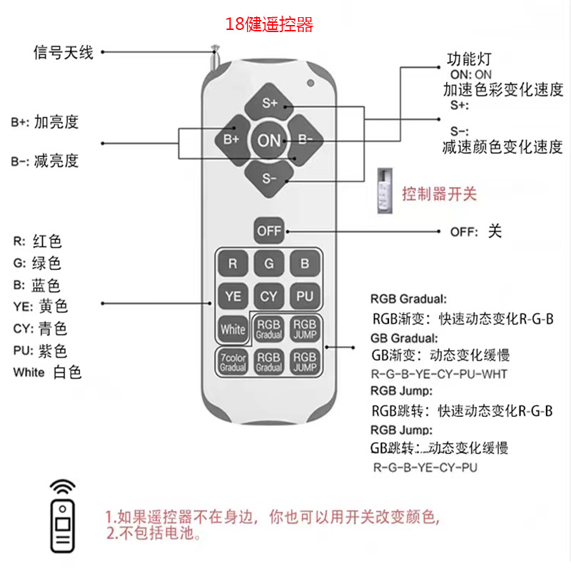 Теплый белый; Положительная белая; Внутренний контроль RGB; RGB-12 пульт дистанционного управления